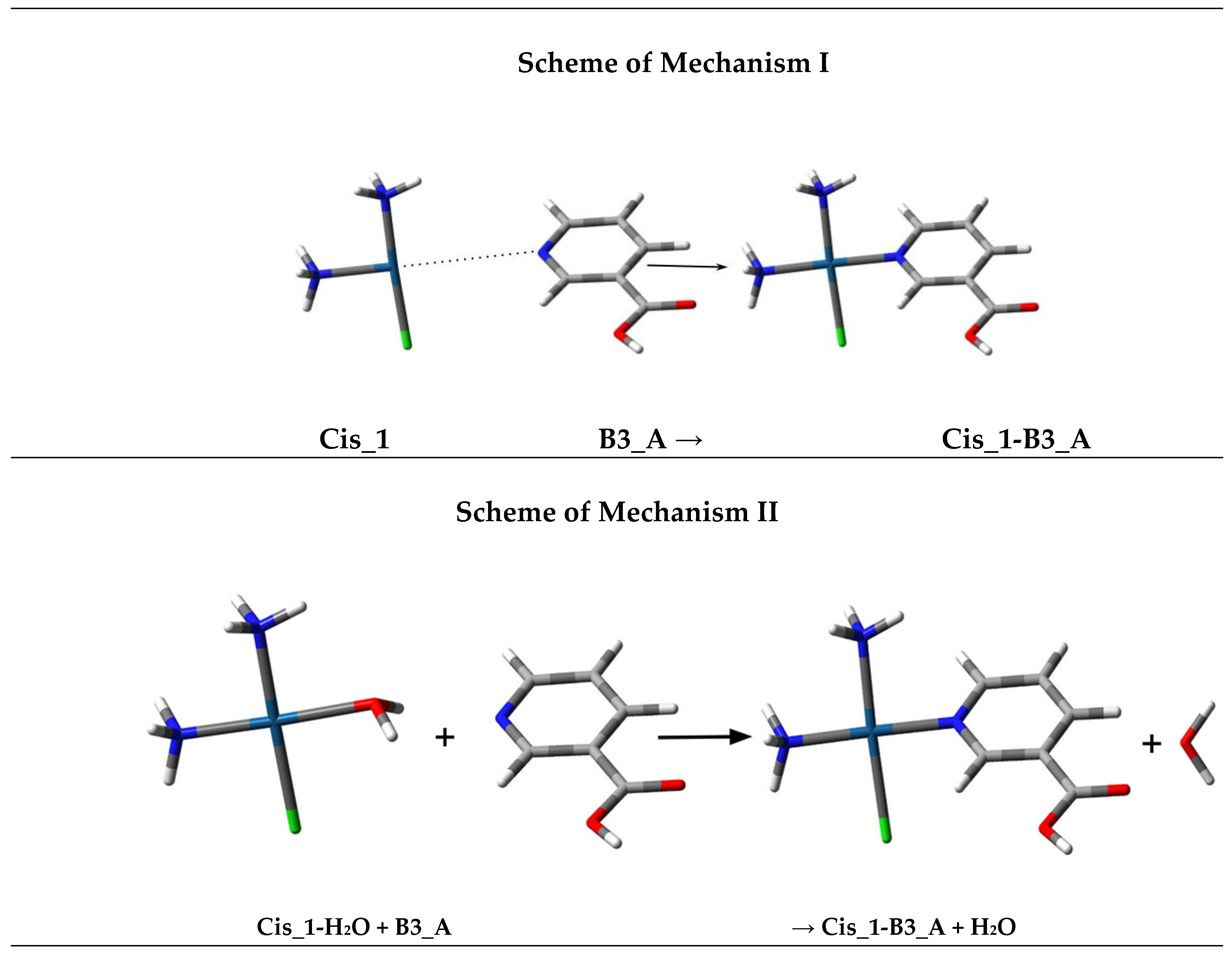 - B3LYP/6-31G(d,p) [77,78], where platinum atoms were treated with the LanL2DZ [79] basis set, which incorporates relativistic effective core potentials suitable for heavy elements. The B3LYP functional is a hybrid approach recognized for its broad applicability and has been validated in studies of cisplatin–nucleobase interactions.