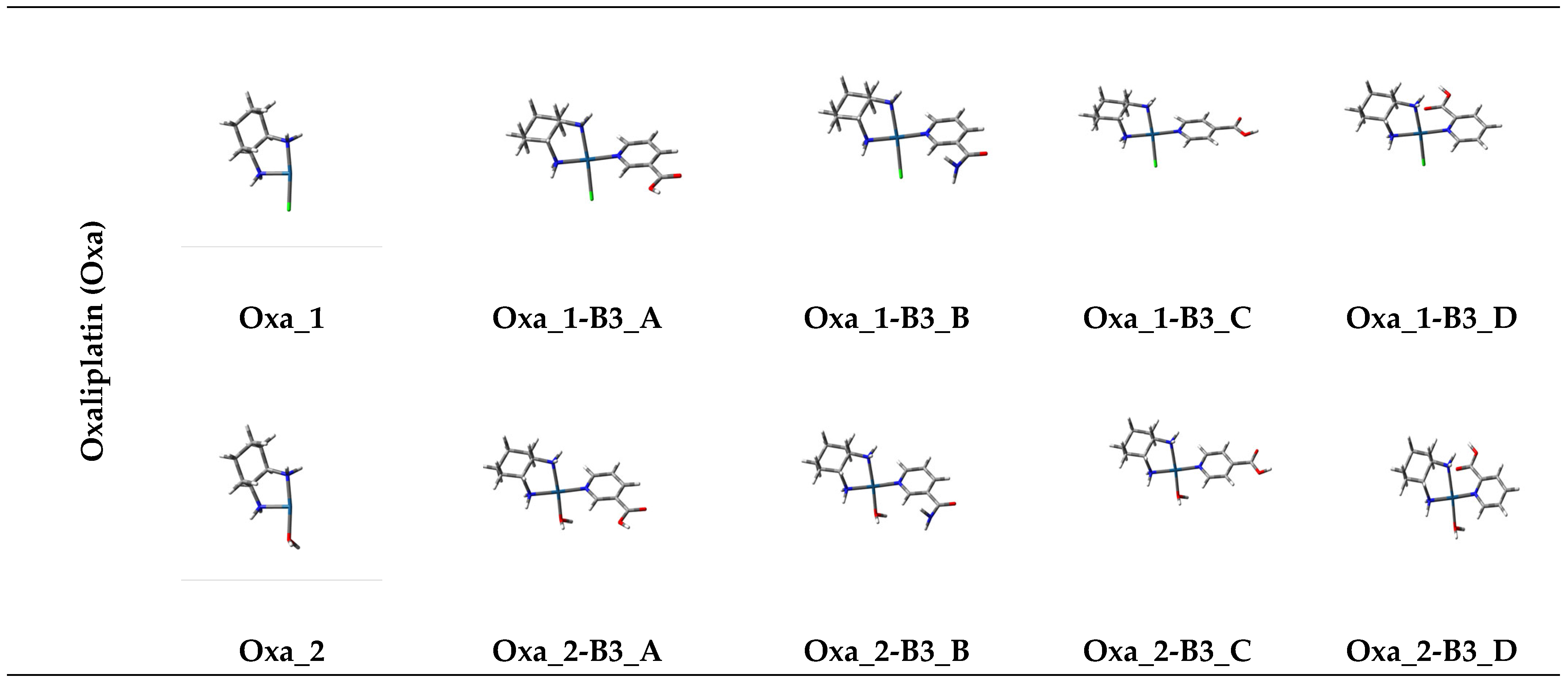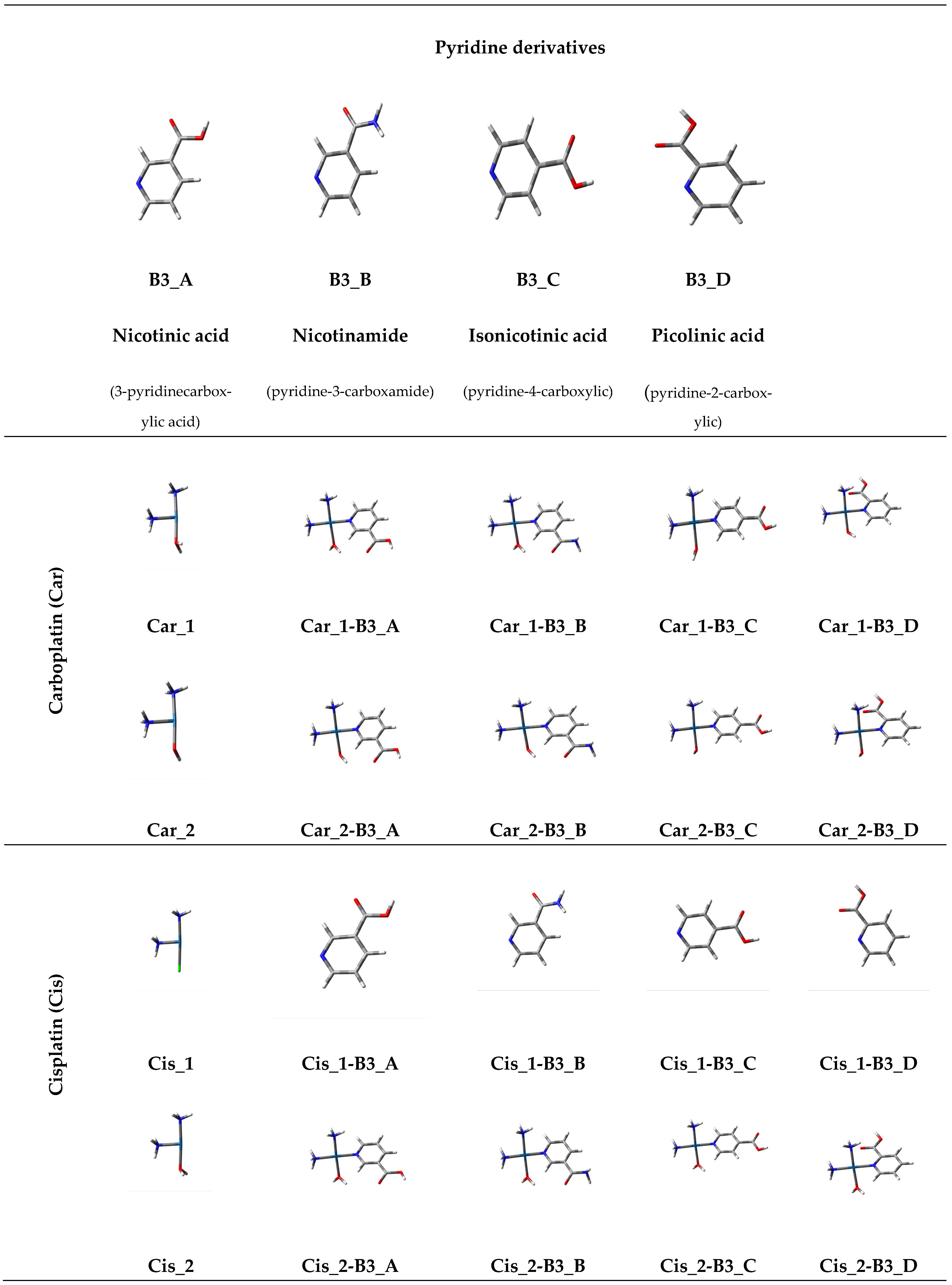 | Property | Nucleobases (Adenine (A), Guanine (G)) | Pyridine Derivatives (B3_A, B3_B, B3_C, B3_D) | Platinum Hydrolysis Products (Cis_1, Car_1, Oxa_2, etc.) |