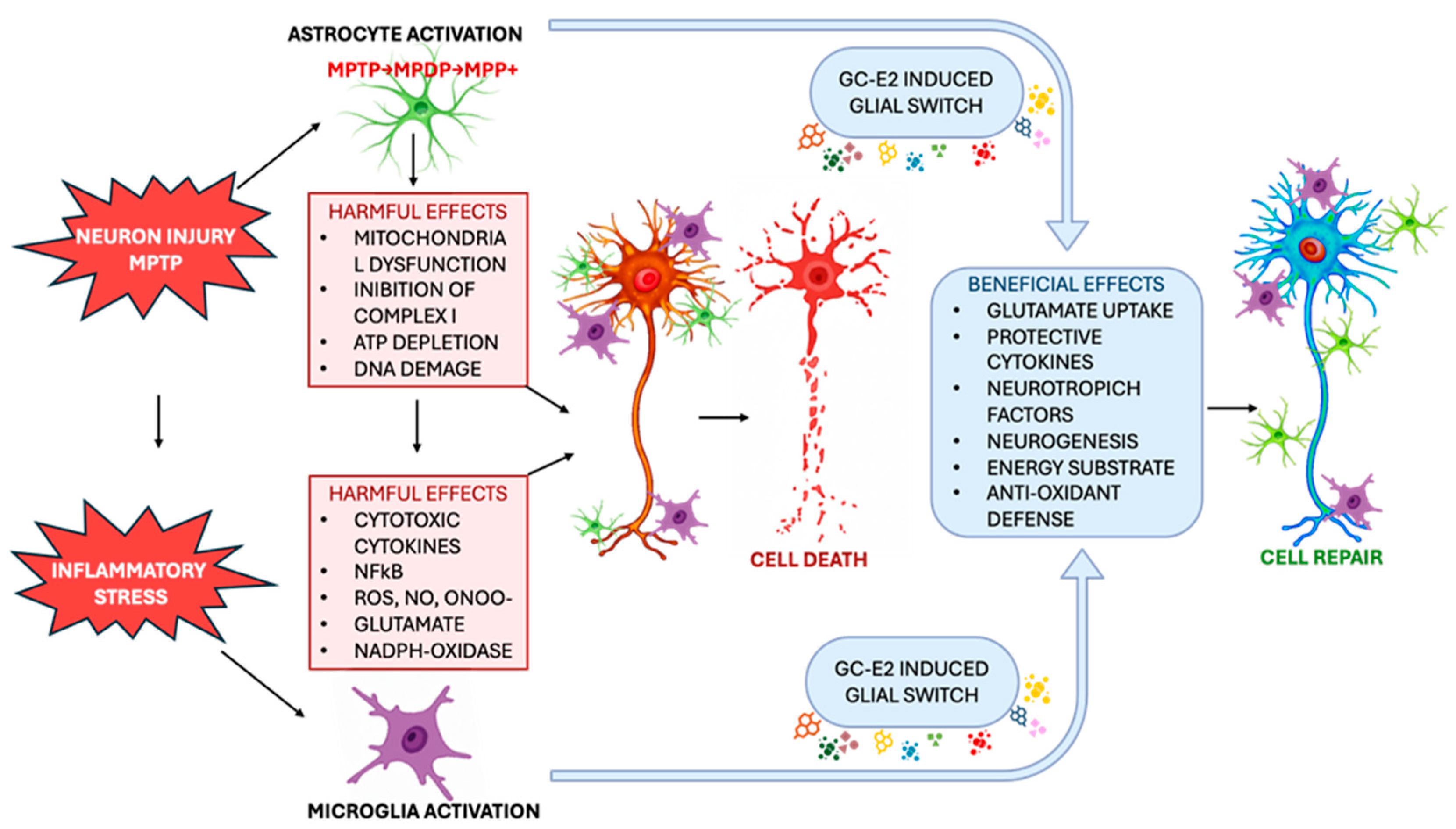 - L’ Episcopo, F.; Tirolo, C.; Testa, N.; Caniglia, S.; Morale, M.C.; Marchetti, B. Glia as a Turning Point in the Therapeutic Strategy of Parkinson’s Disease. CNS Neurol. Disord. Drug Targets 2010, 9, 349–372. [Google Scholar] [CrossRef] [PubMed]