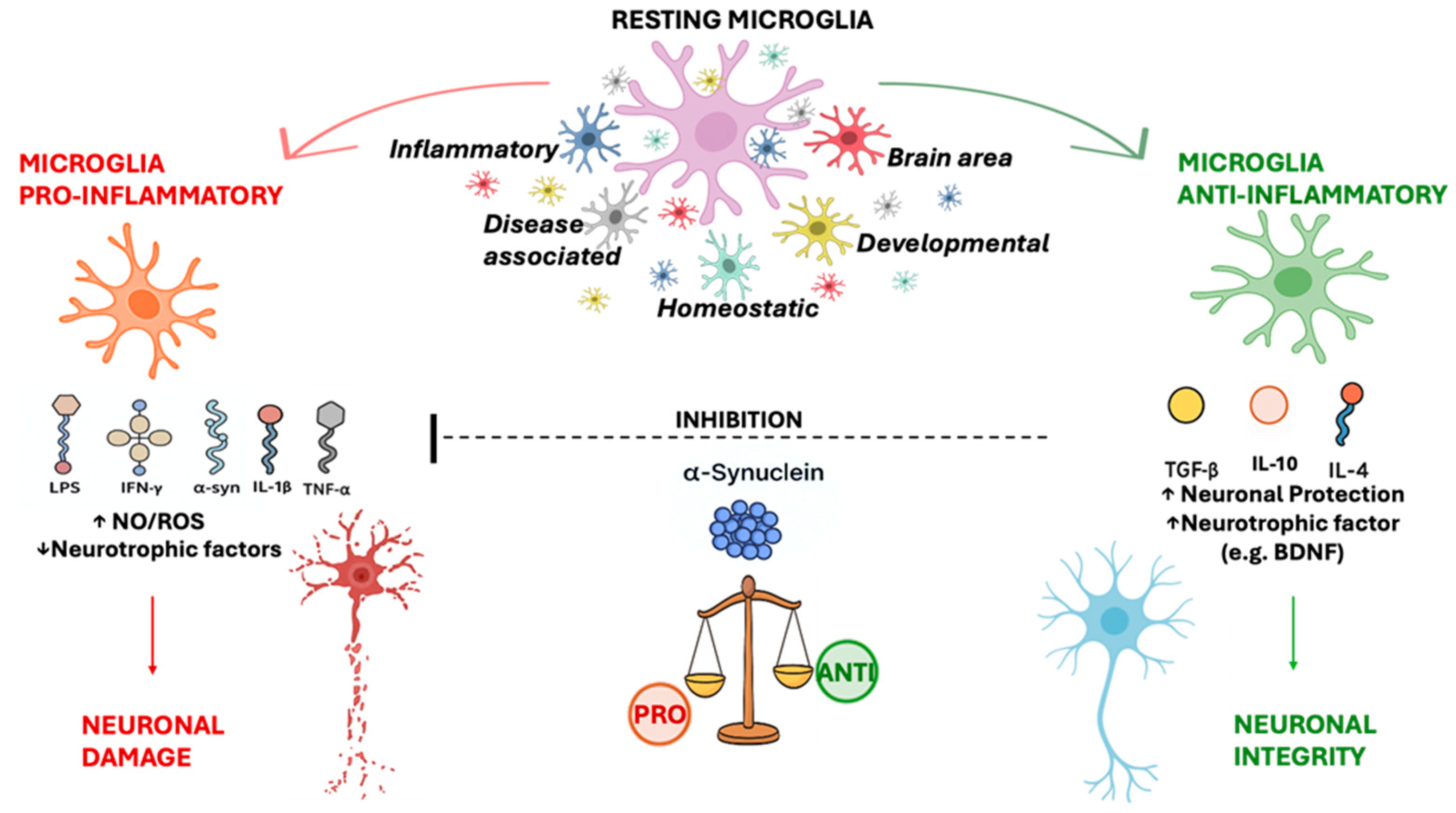 - Wang, J.; He, W.; Zhang, J. A Richer and More Diverse Future for Microglia Phenotypes. Heliyon 2023, 9, e14713. [Google Scholar] [CrossRef]