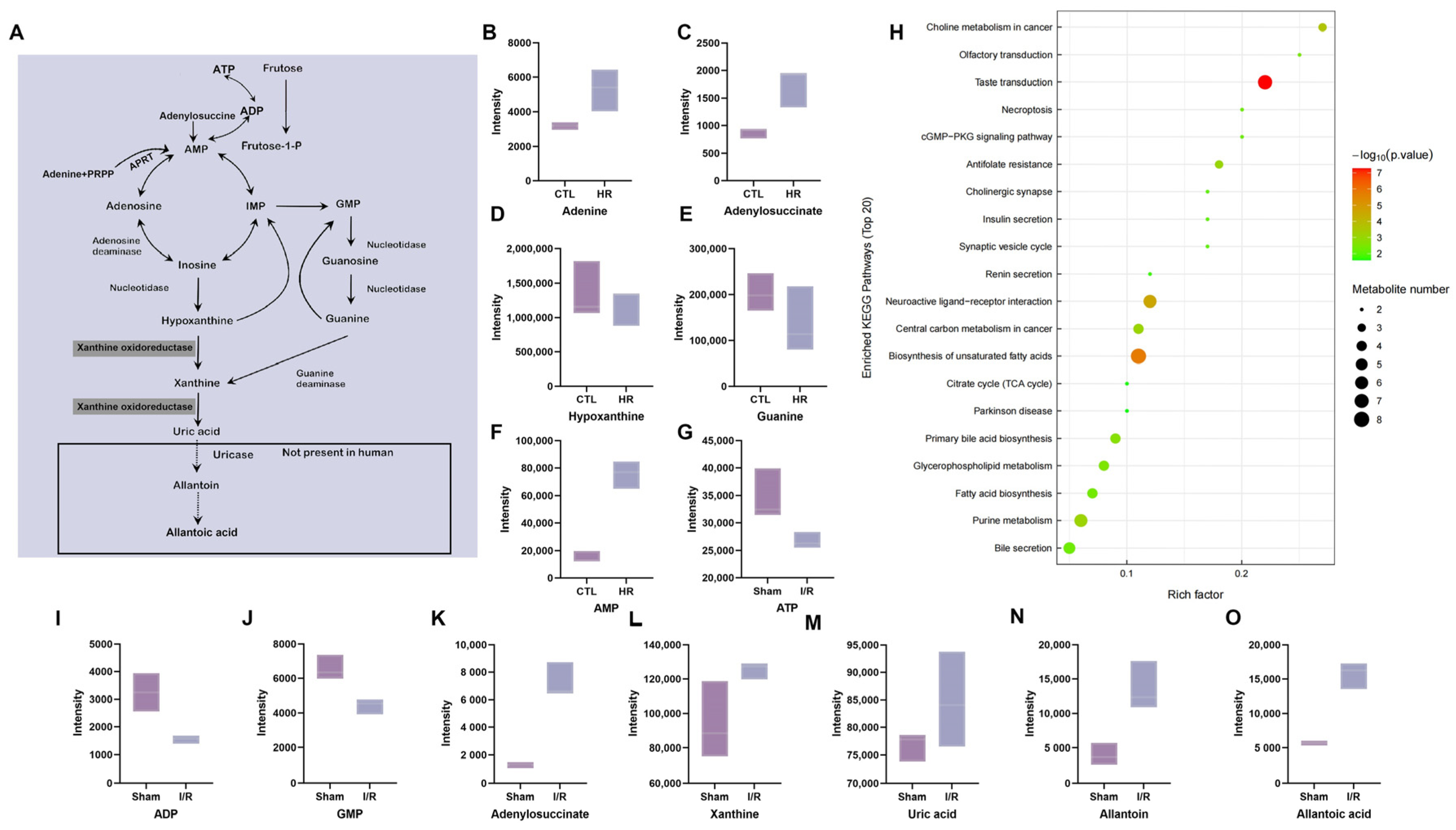 22]. Furthermore, the accumulation of xanthine and UA, which are catabolic byproducts of ATP, can block the purine salvage pathway, thereby exacerbating ATP depletion and forming a vicious cycle [