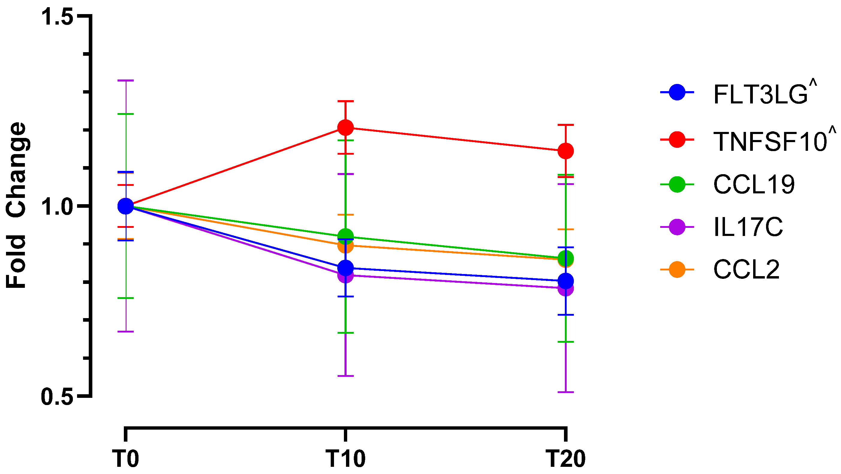 | SYTL2 Synaptotagmin-Like 2 | 1.096 ± 0.071 | 1.155 * ± 0.048 | 1.186 ** ± 0.077 | |