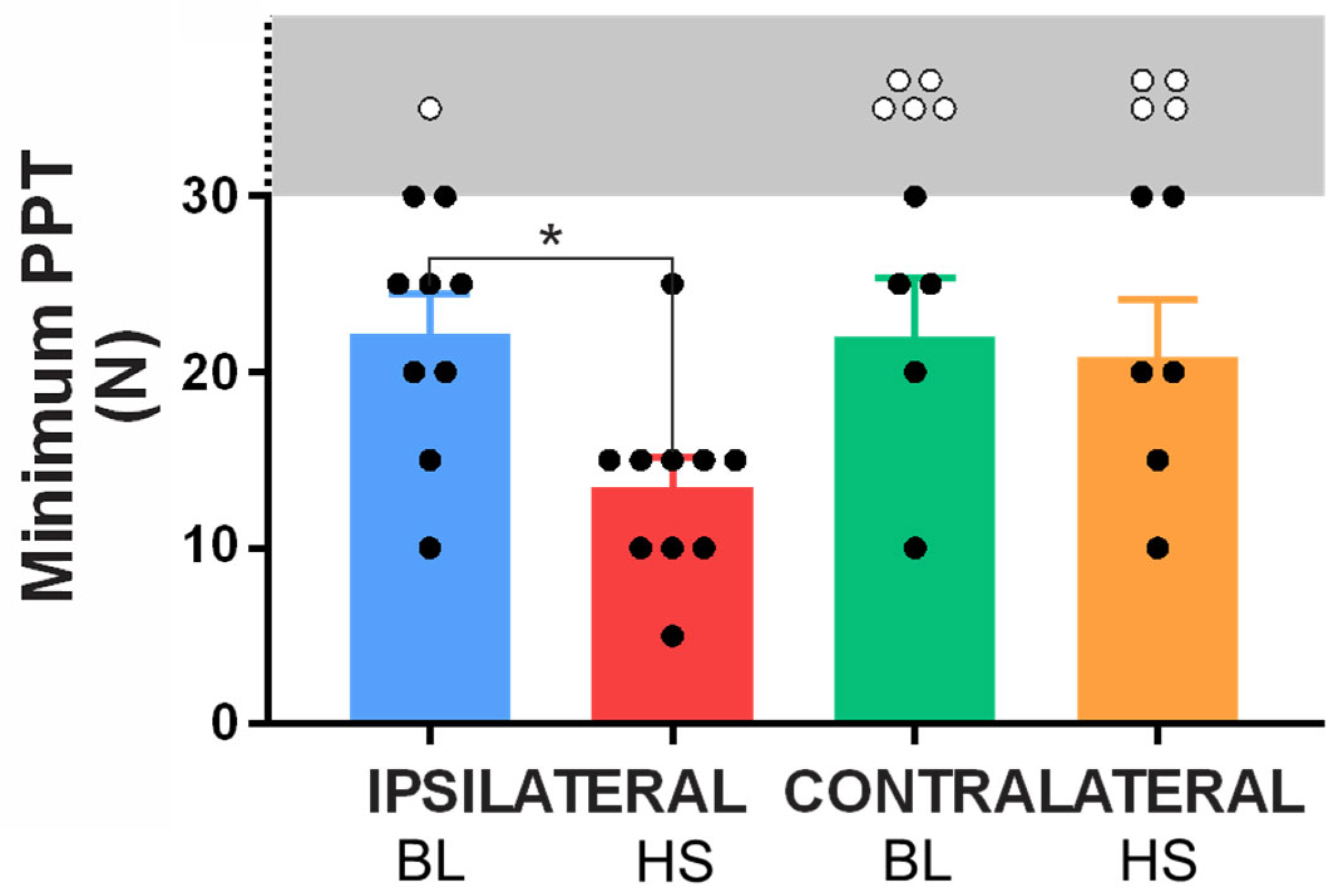 2.2. Cohort Two—Assessment of Mechanical Hyperalgesia