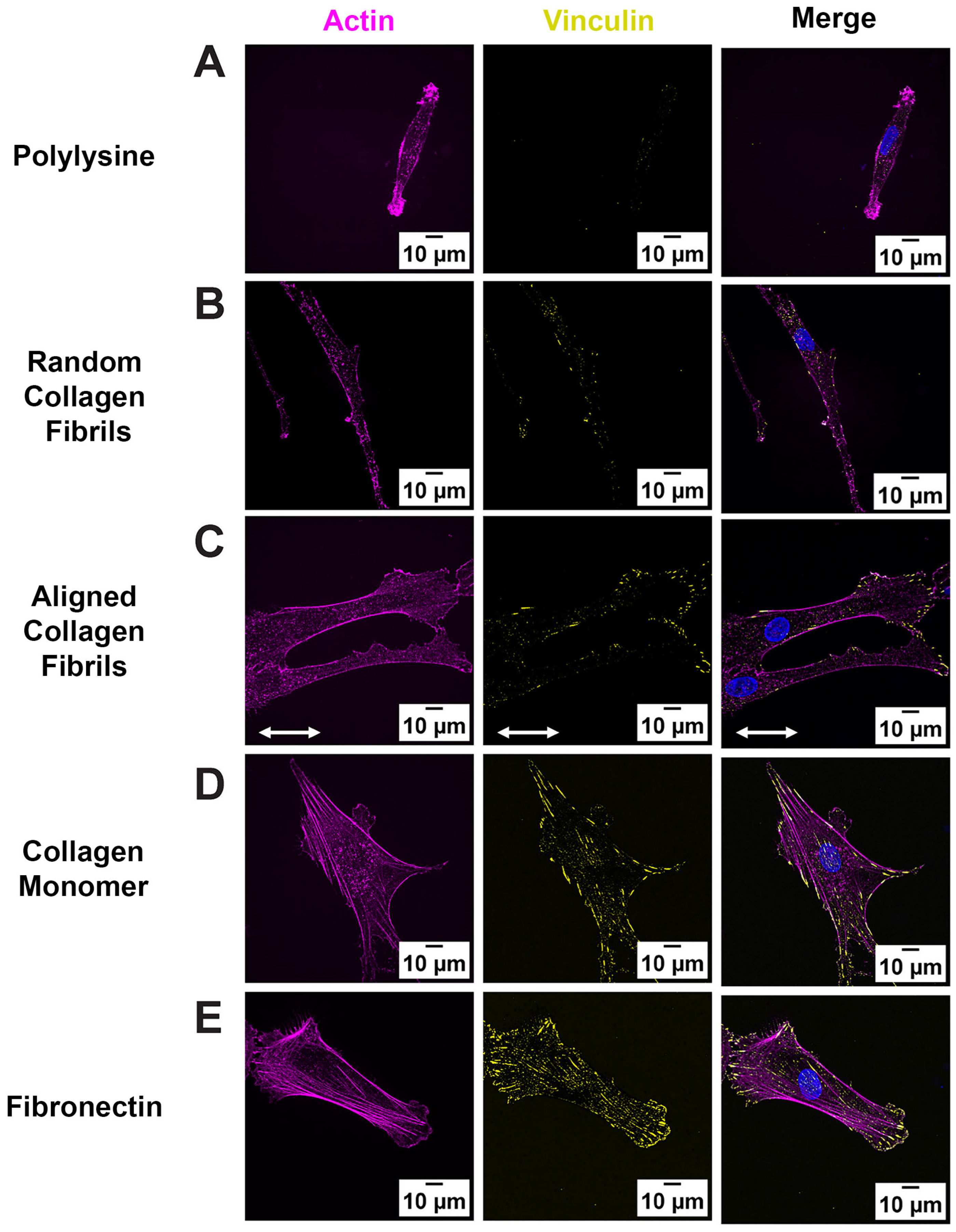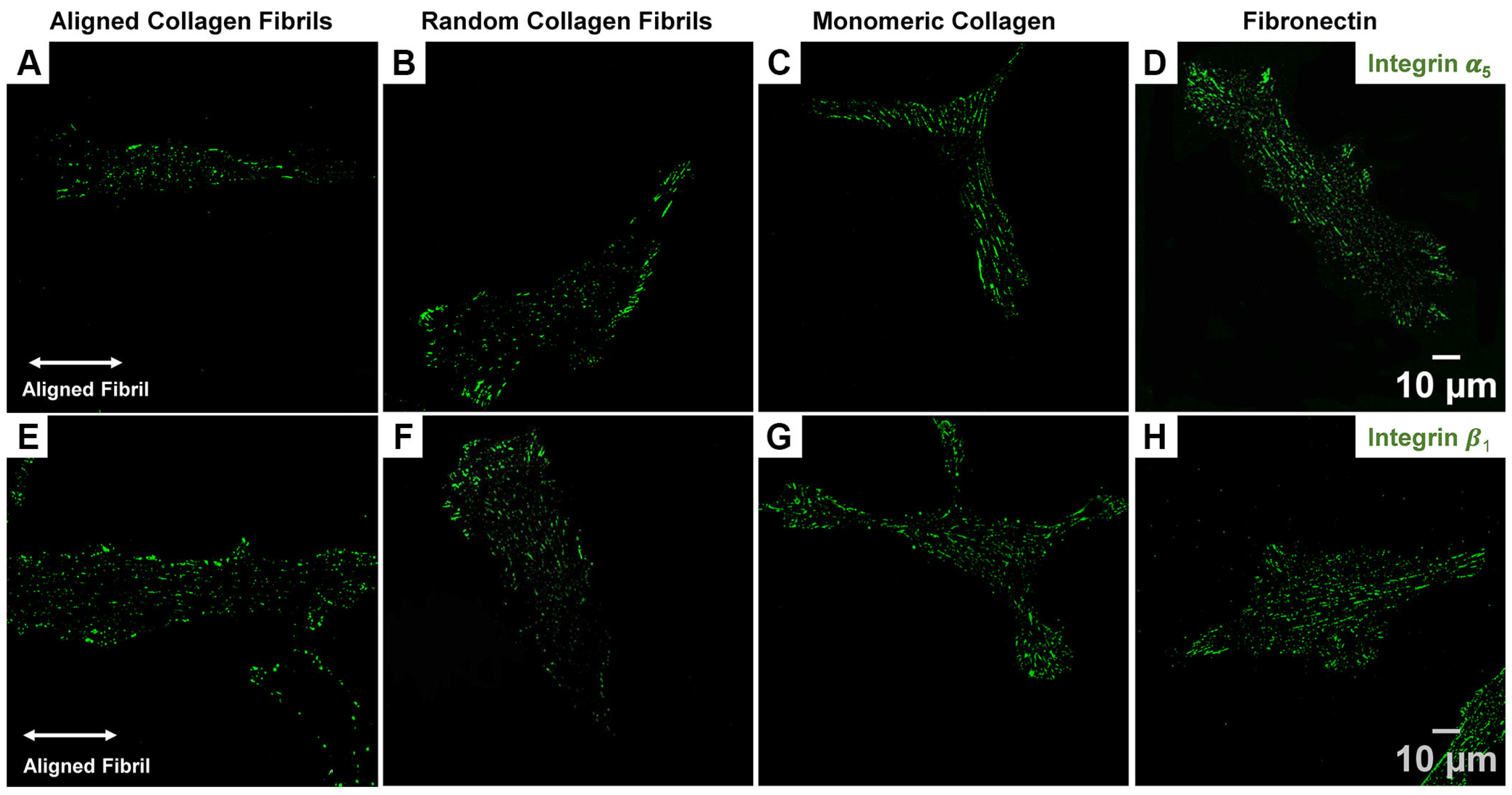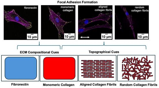 2.2. ECM Composition and Alignment Modulate Focal Adhesion Patterning