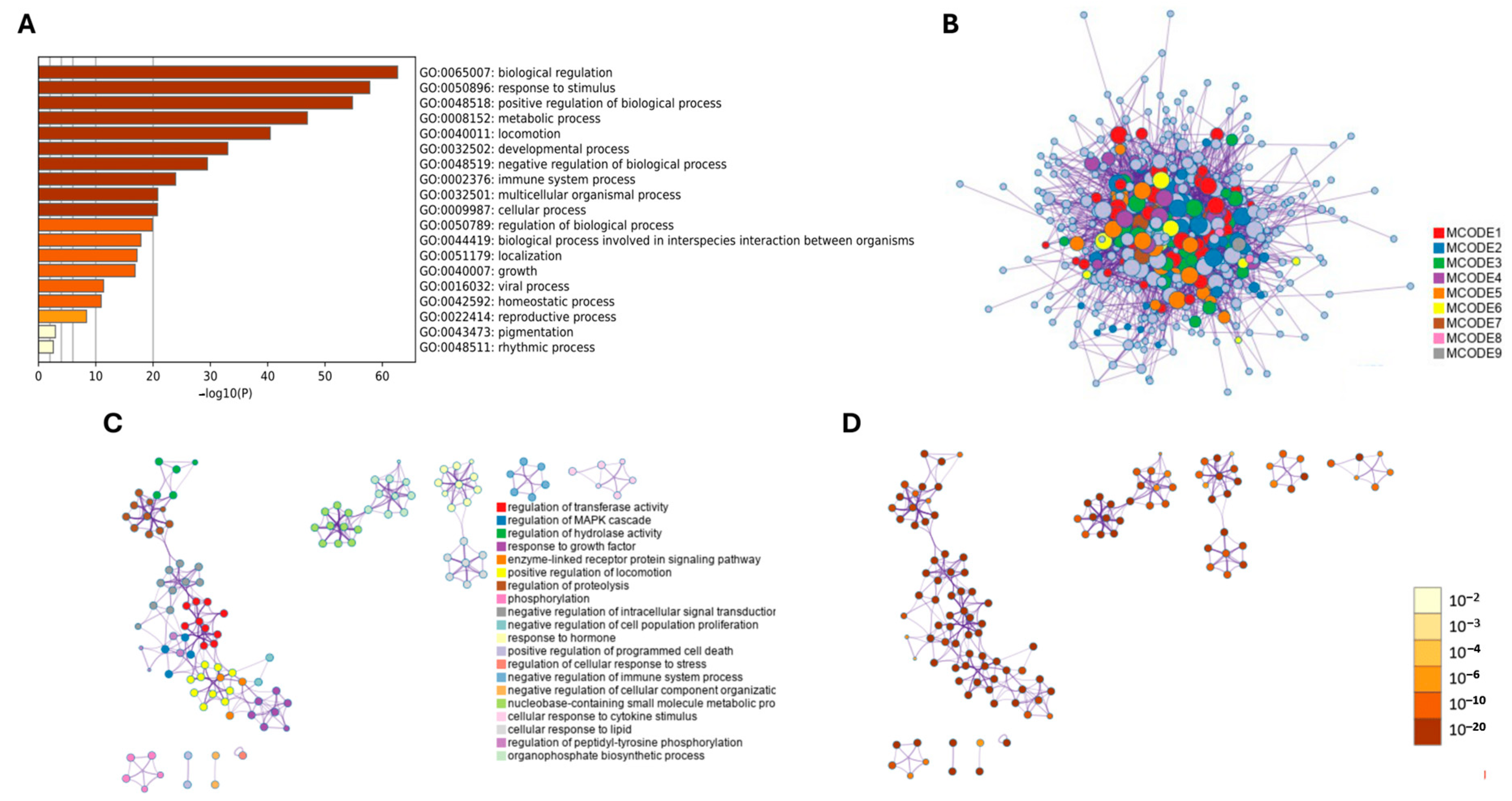 - Bader, G.D.; Hogue, C.W. An Automated Method for Finding Molecular Complexes in Large Protein Interaction Networks. BMC Bioinform. 2003, 4, 2. [Google Scholar] [CrossRef]