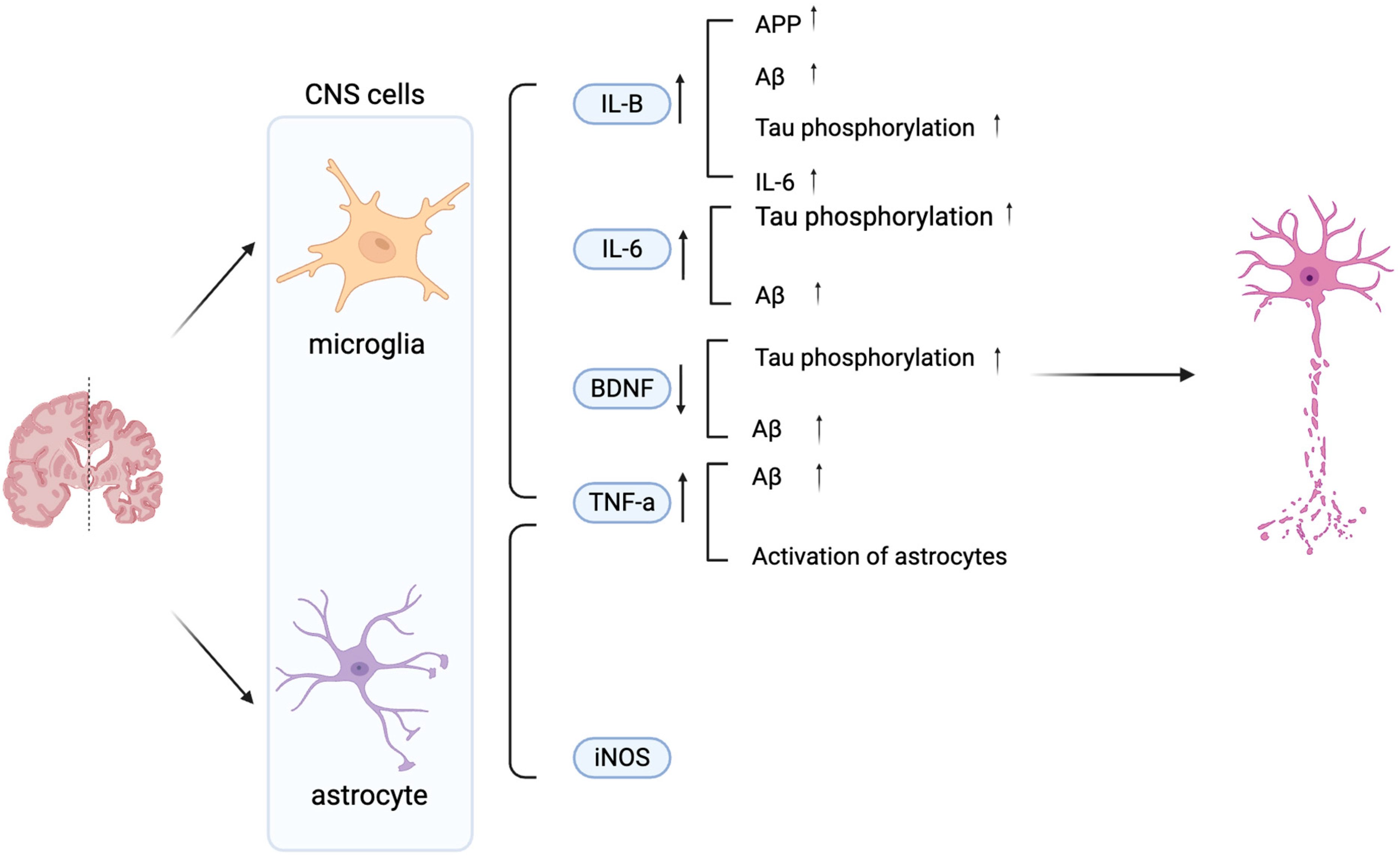 - Akama, K.T.; Van Eldik, L.J. β-Amyloid stimulation of inducible nitric-oxide synthase in astrocytes is interleukin-1β- and tumor necrosis factor-α-dependent, and involves a TNFα receptor-associated factor- and NFκB-inducing kinase-dependent signaling mechanism. J. Biol. Chem. 2000, 275, 7918–7924. [Google Scholar] [CrossRef] [PubMed]