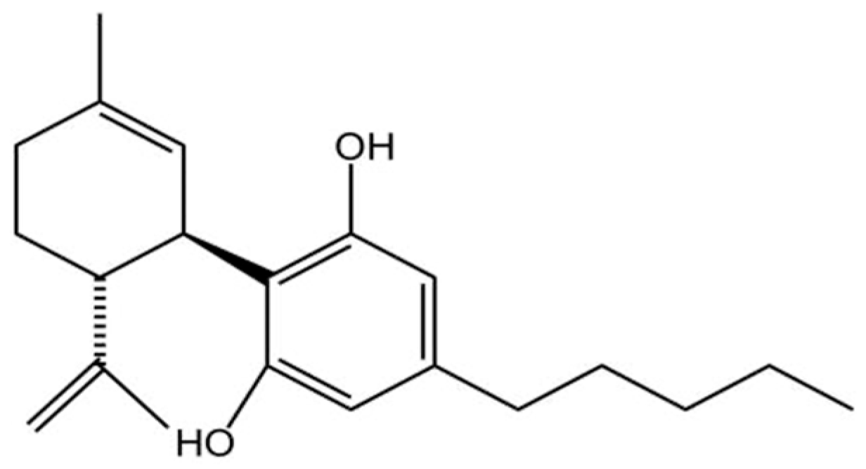 - Peng, J.; Fan, M.; An, C.; Ni, F.; Huang, W.; Luo, J. A narrative review of molecular mechanism and therapeutic effect of cannabidiol (CBD). Basic Clin. Pharmacol. Toxicol. 2022, 130, 439–456. [Google Scholar] [CrossRef] [PubMed]