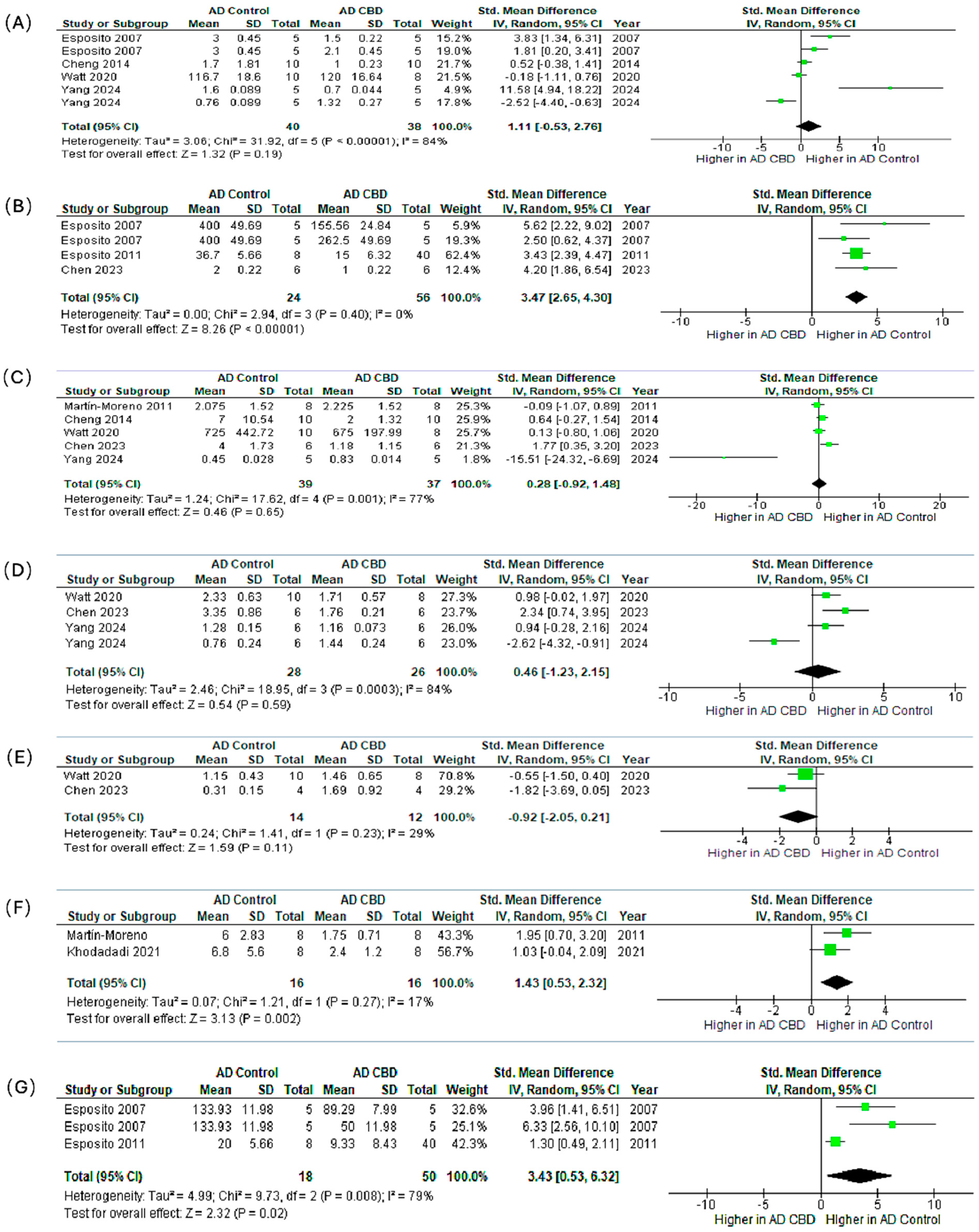 4.3. Meta-Analysis of Preclinical Trials: CBD and AD Neuroinflammatory Markers