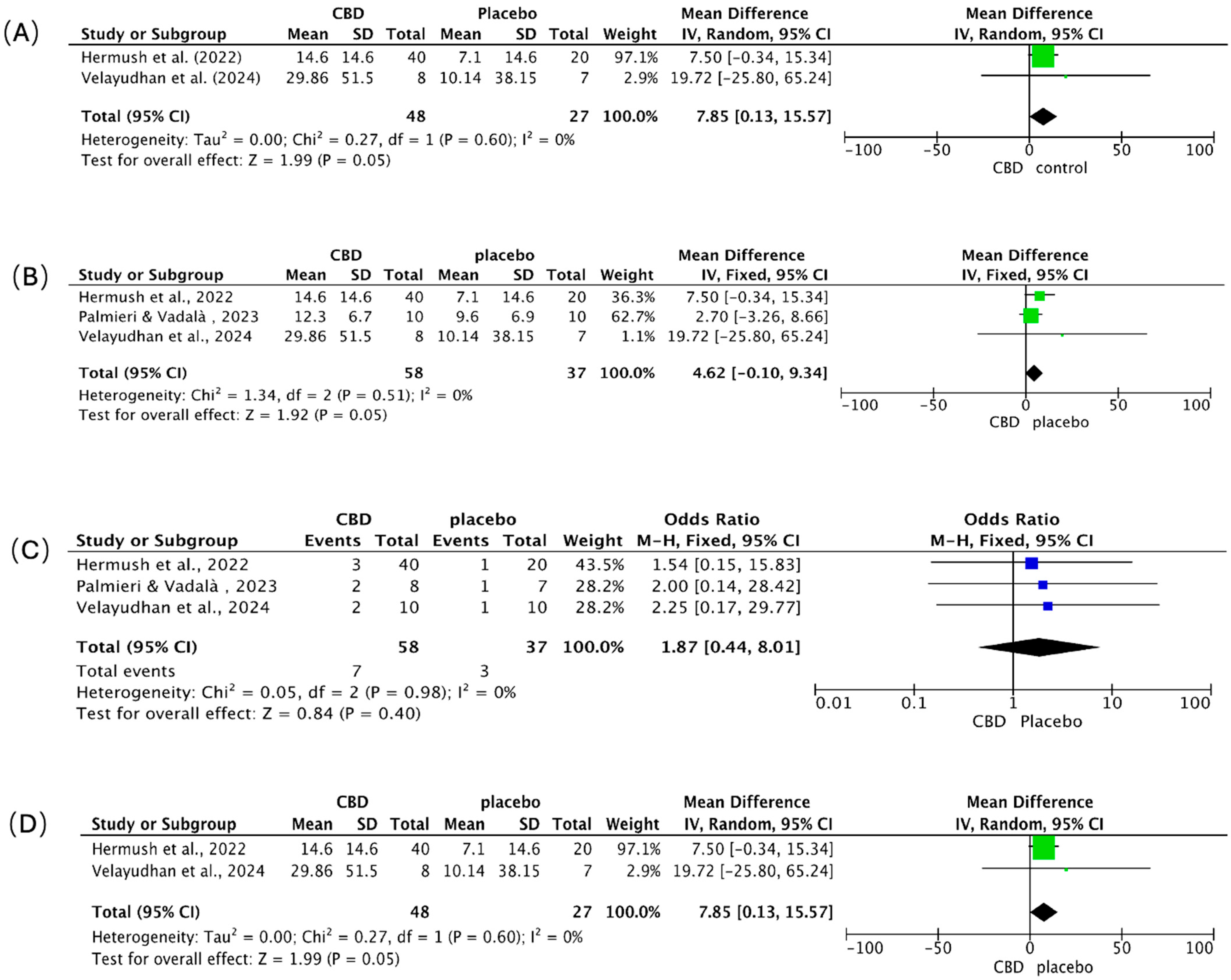 5.1.2. Clinical Efficacy Study of CBD in Patients with AD: Results of a Meta-Analysis