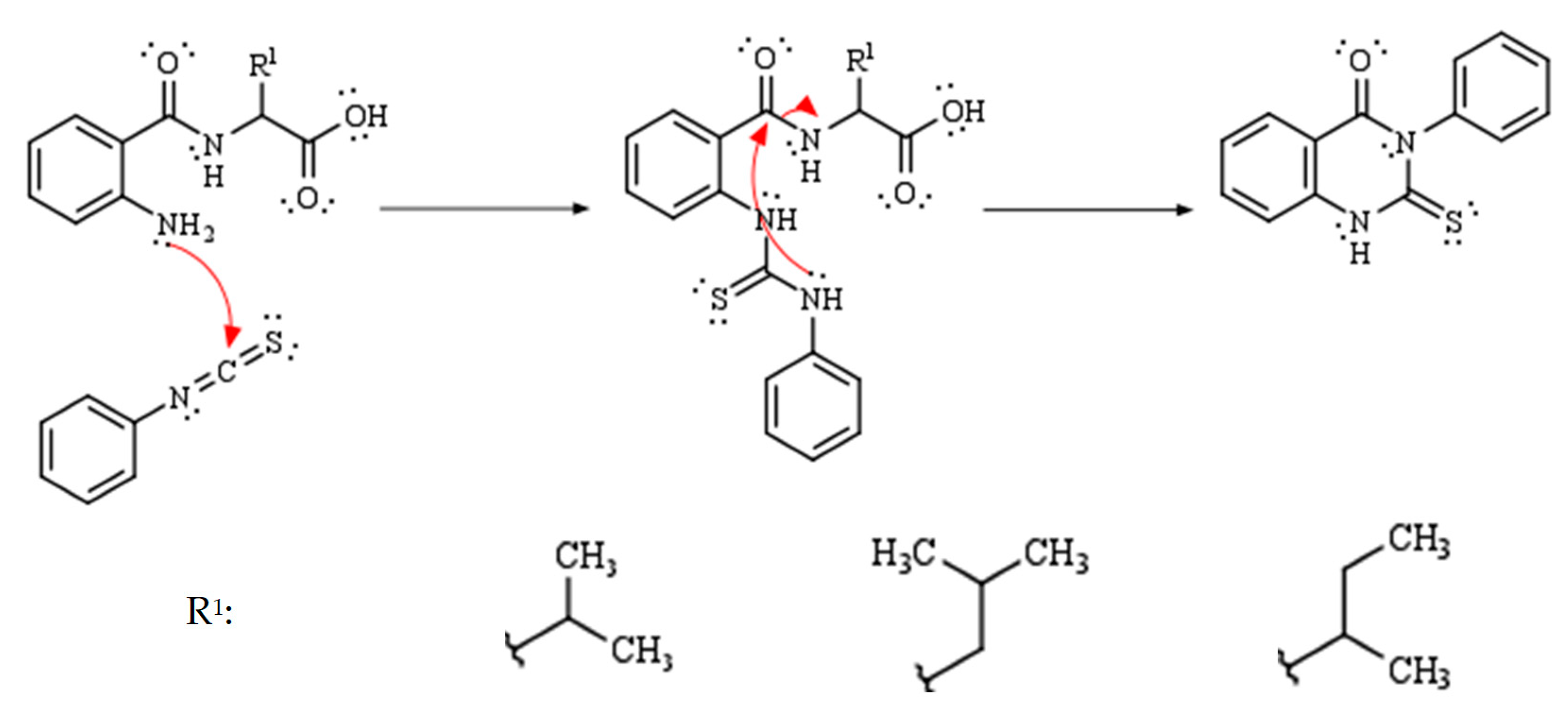 - Mohammadi, A.A. One-pot Syntheses of Some New 2,4(1H,3H)-quinazolinedione Derivatives in the Absence of Catalyst. J. Heterocycl. Chem. 2017, 54, 2075–2078. [Google Scholar]
