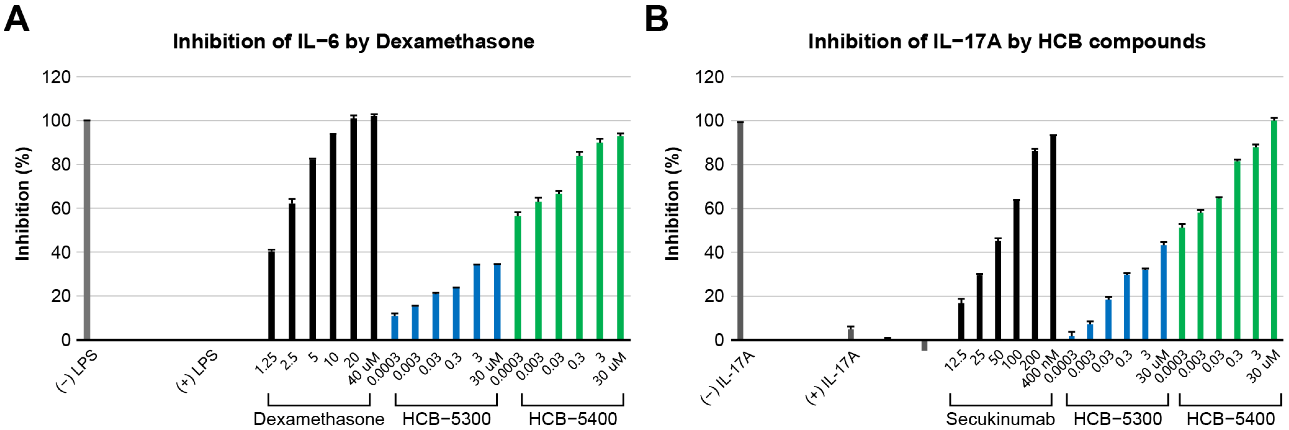 2.2. Evaluation of Anti-Inflammatory Activity (IL-6 and IL-17A Inhibitory Activity)
