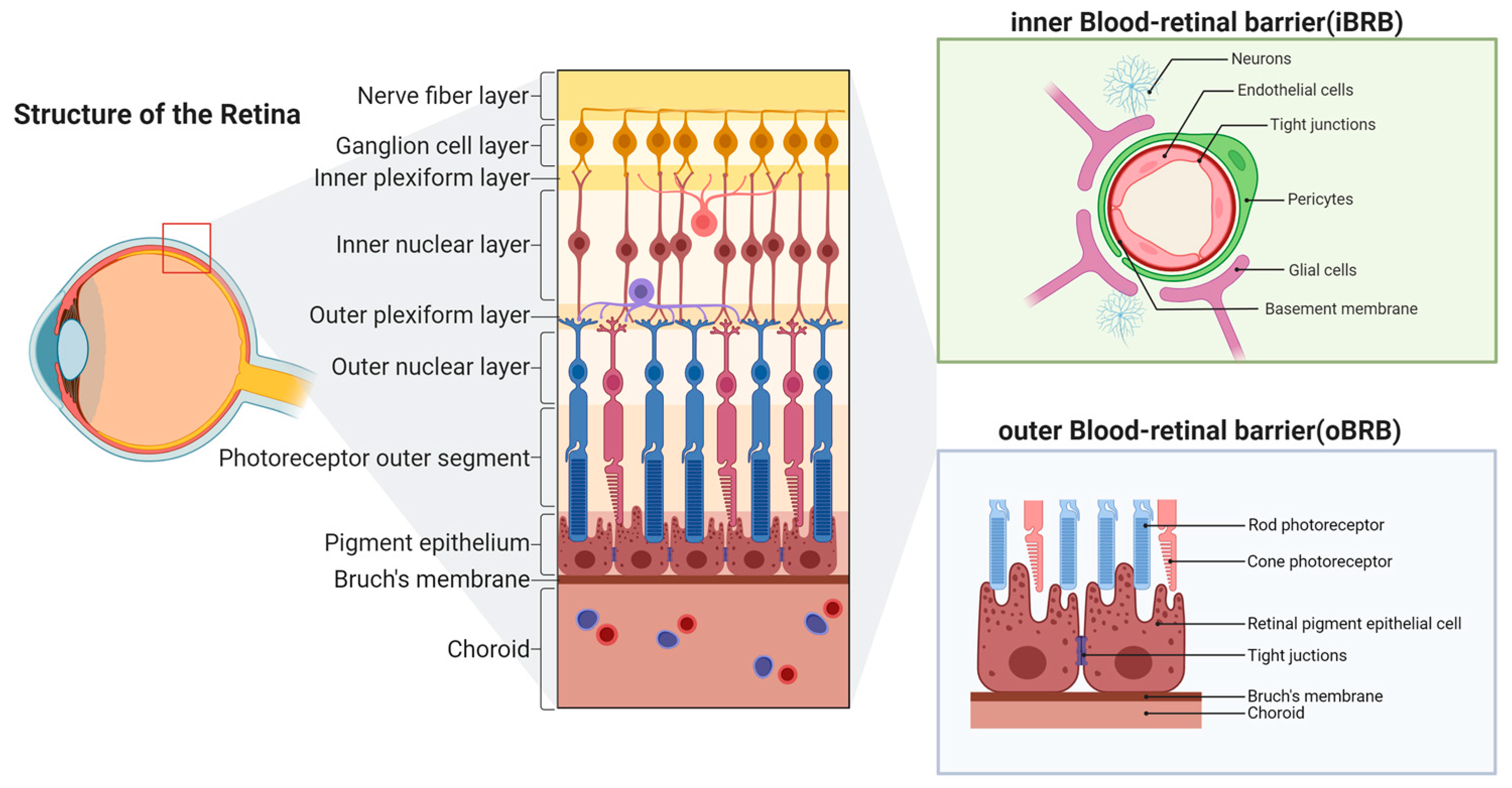 - Bora, K.; Kushwah, N.; Maurya, M.; Pavlovich, M.C.; Wang, Z.; Chen, J. Assessment of Inner Blood-Retinal Barrier: Animal Models and Methods. Cells 2023, 12, 2443. [Google Scholar] [CrossRef]