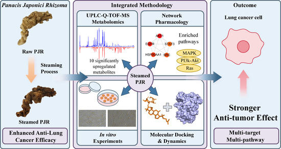 APA StyleZhang, Y., Yang, J., Qu, B., Huang, J., Wang, Y., & Yan, J. (2025). Enhanced Anti-Lung Cancer Effects of Steamed Panacis Japonici Rhizoma: Insights from Metabolomics, Network Pharmacology and Molecular Dynamics Simulation. International Journal of Molecular Sciences, 26(24), 11999. https://doi.org/10.3390/ijms262411999