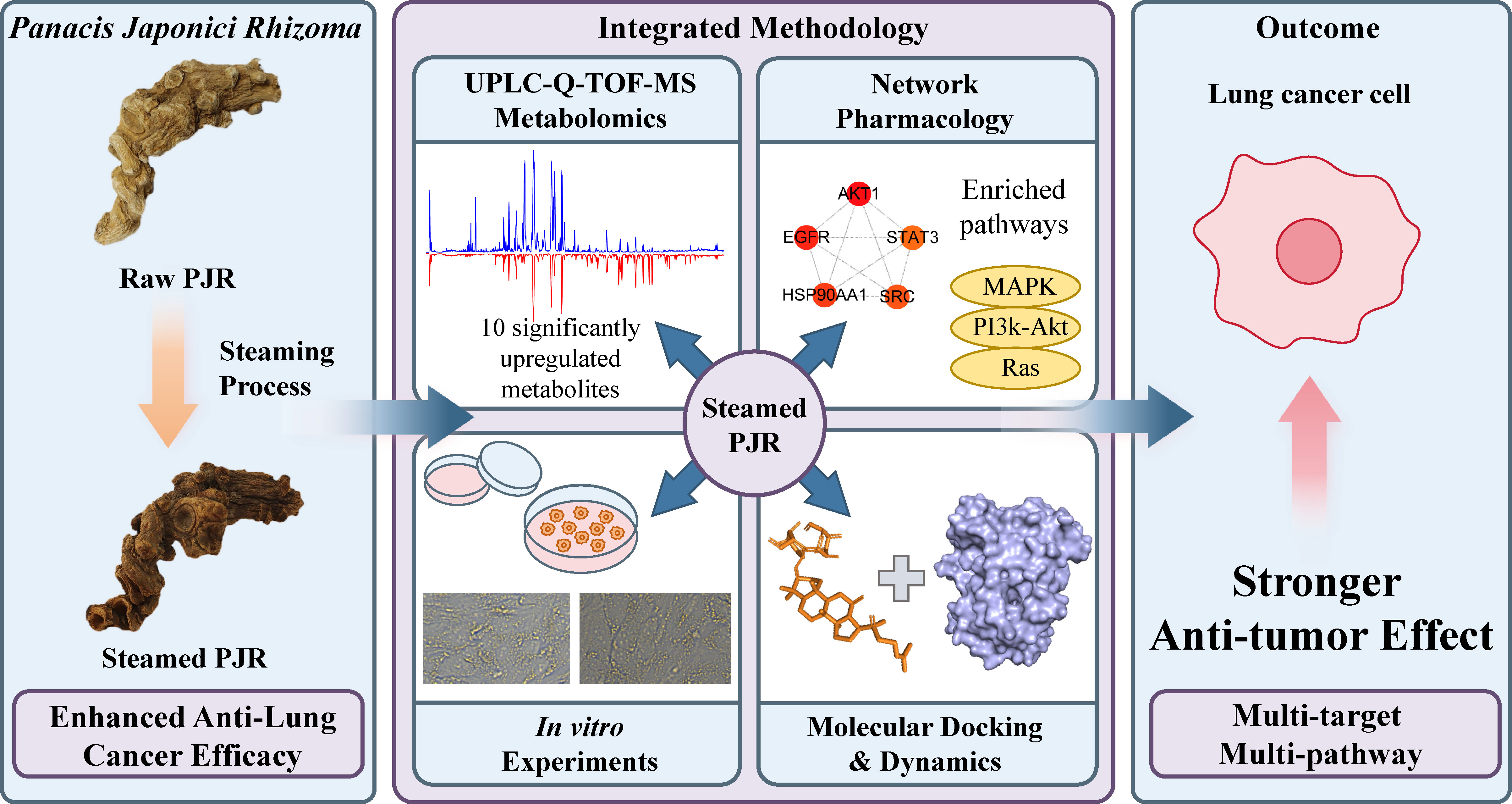 Enhanced Anti-Lung Cancer Effects of Steamed Panacis Japonici Rhizoma: Insights from Metabolomics, Network Pharmacology and Molecular Dynamics Simulation