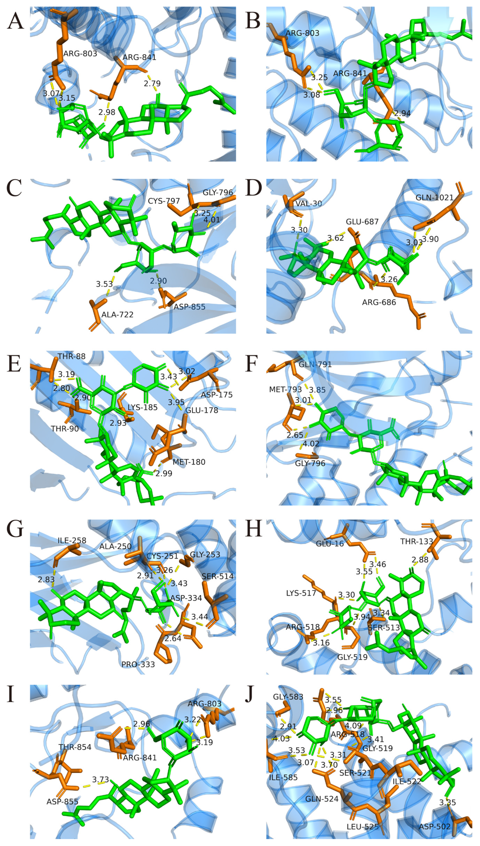 - Gao, G.Z.; Zang, H.R.; Zhang, T.; Wang, X.D.; Liang, X.H. Study on the mechanism of saponins from Panax japonicus on inhibition of A549 cell proliferation and migration through regulating PTEN/PI3K/Akt pathway. Mod. Biomed. Prog. 2020, 20, 242–247. (In Chinese) [Google Scholar]