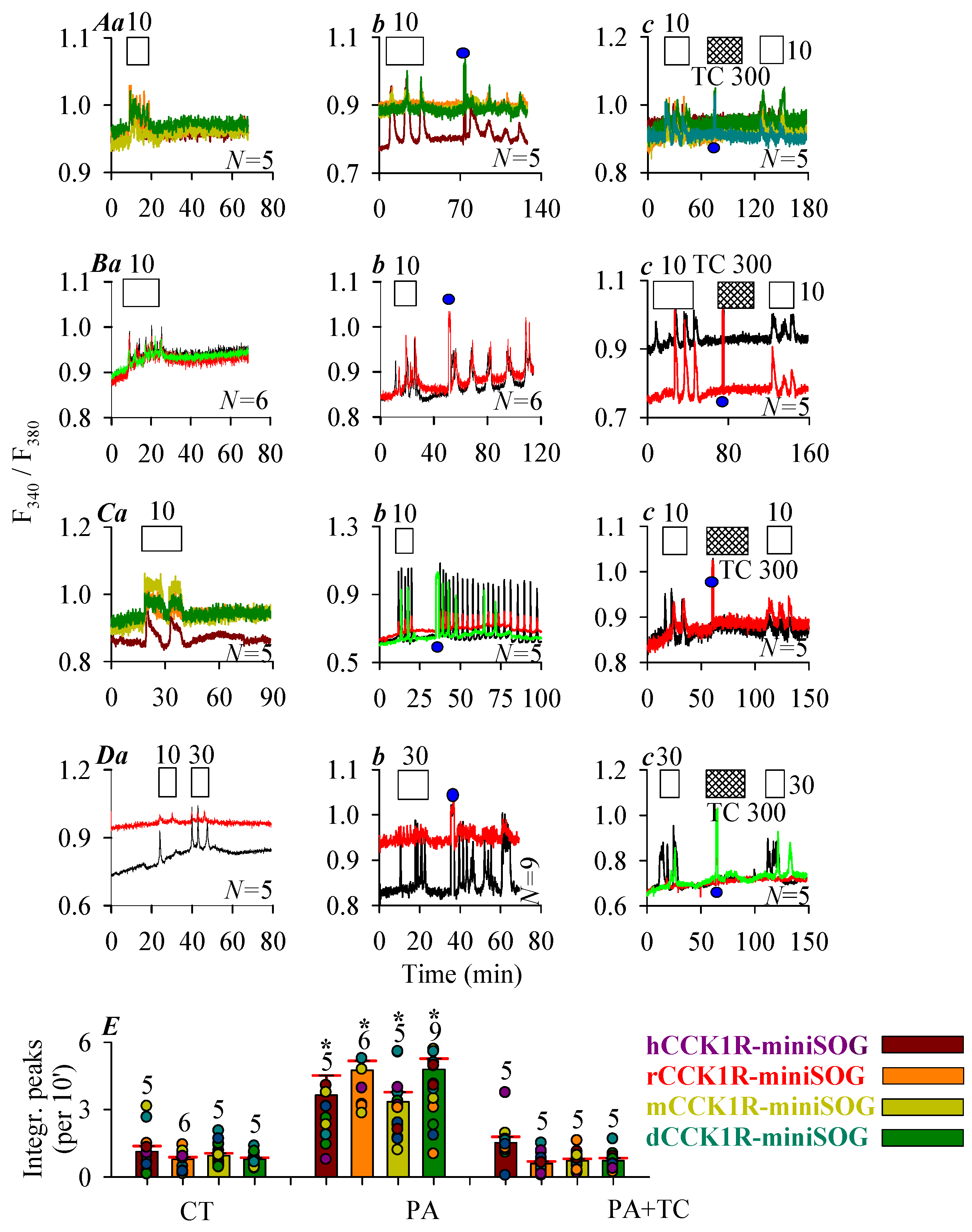 - Wang, J.; Cui, Z.J. Photodynamic activation of cholecystokinin 1 receptor is conserved in mammalian and avian pancreatic acini. Biomedicines 2023, 11, 885. [Google Scholar] [CrossRef]