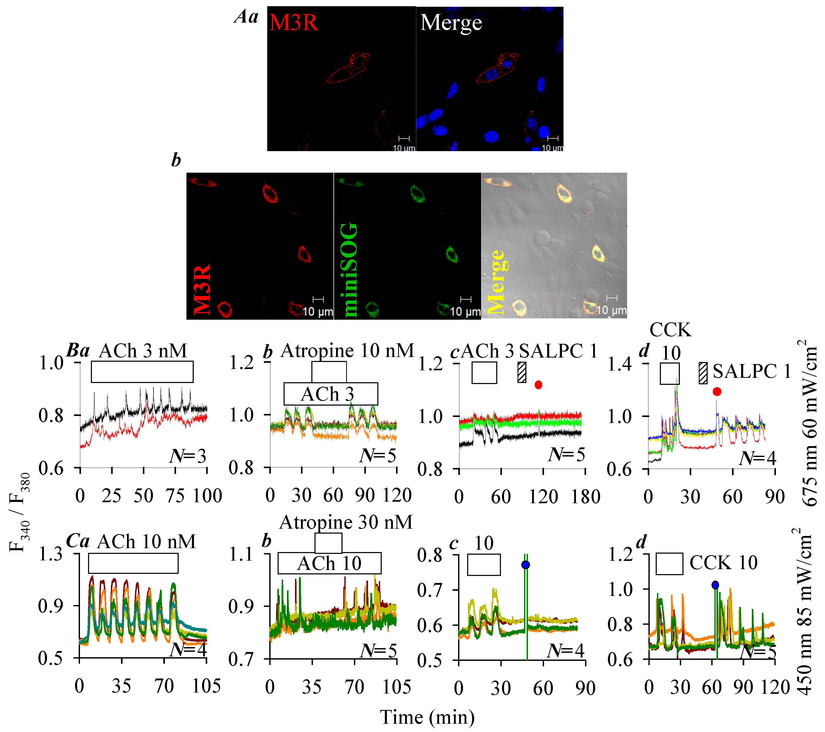 - Li, Y.; Cui, Z.J. Photogenetical activation of cholecystokinin 1 receptor with different genetically encoded protein photosensitizers and from varied subcellular sites. Biomolecules 2020, 10, 1423. [Google Scholar] [CrossRef]