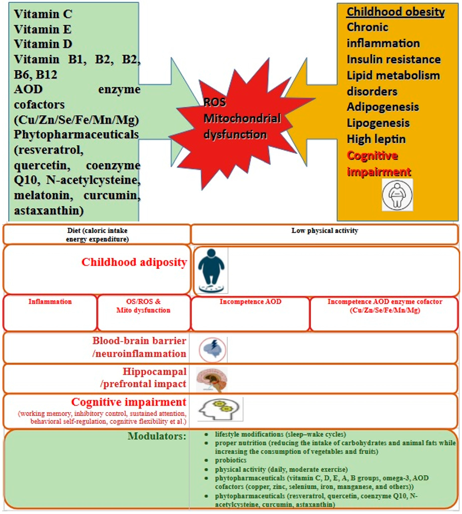 7. The Link Between OS Parameters, Mitochondrial Dysfunction, Deficiency of Micronutrient Cofactors for AOD, and Cognitive Disorders in Childhood Obesity