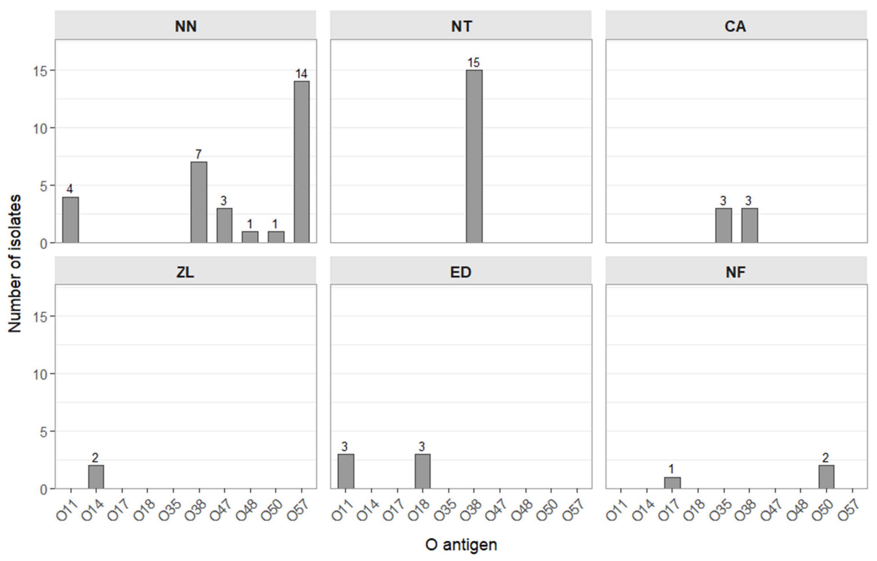 4.4. Determination of O Antigen in Salmonella spp. Isolates