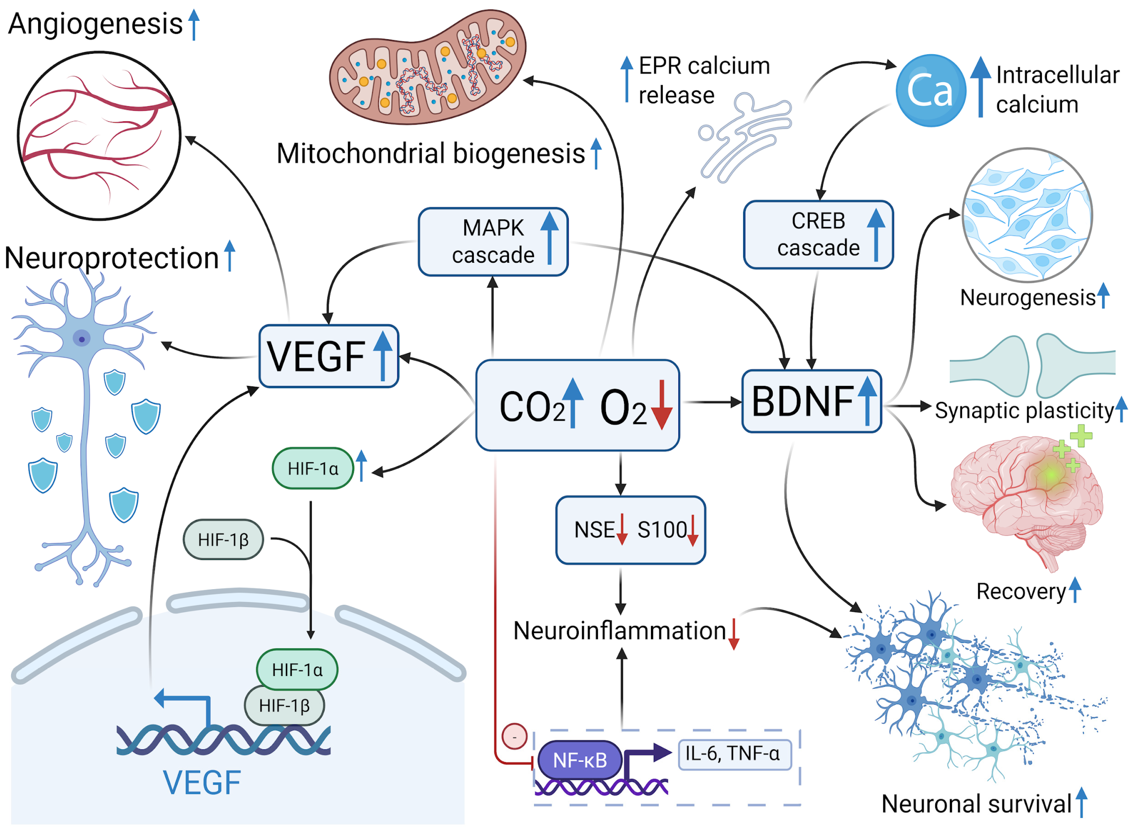 Tregub, P.P.; Chekulaev, P.A.; Zembatov, G.M.; Namiot, E.D.; Ignatyuk, M.A.; Atiakshin, D.A.; Berdnikov, A.K.; Manasova, Z.S.; Litvitskiy, P.F.; Kulikov, V.P. Neuroplastic Effects Induced by Hypercapnic Hypoxia in Rat Focal Ischemic Stroke Are Driven via BDNF and VEGF Signaling. Int. J. Mol. Sci. 2025, 26, 12019. https://doi.org/10.3390/ijms262412019