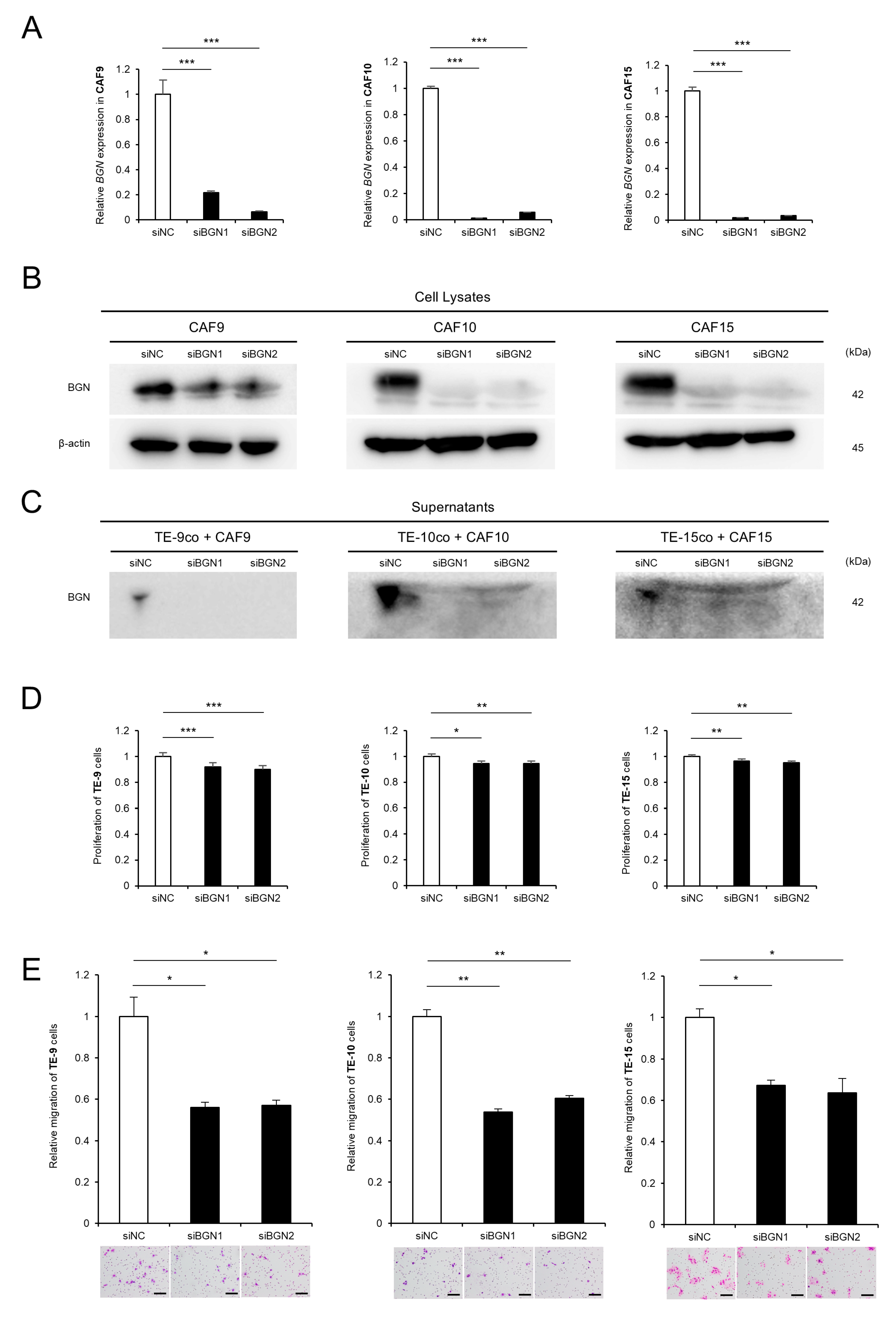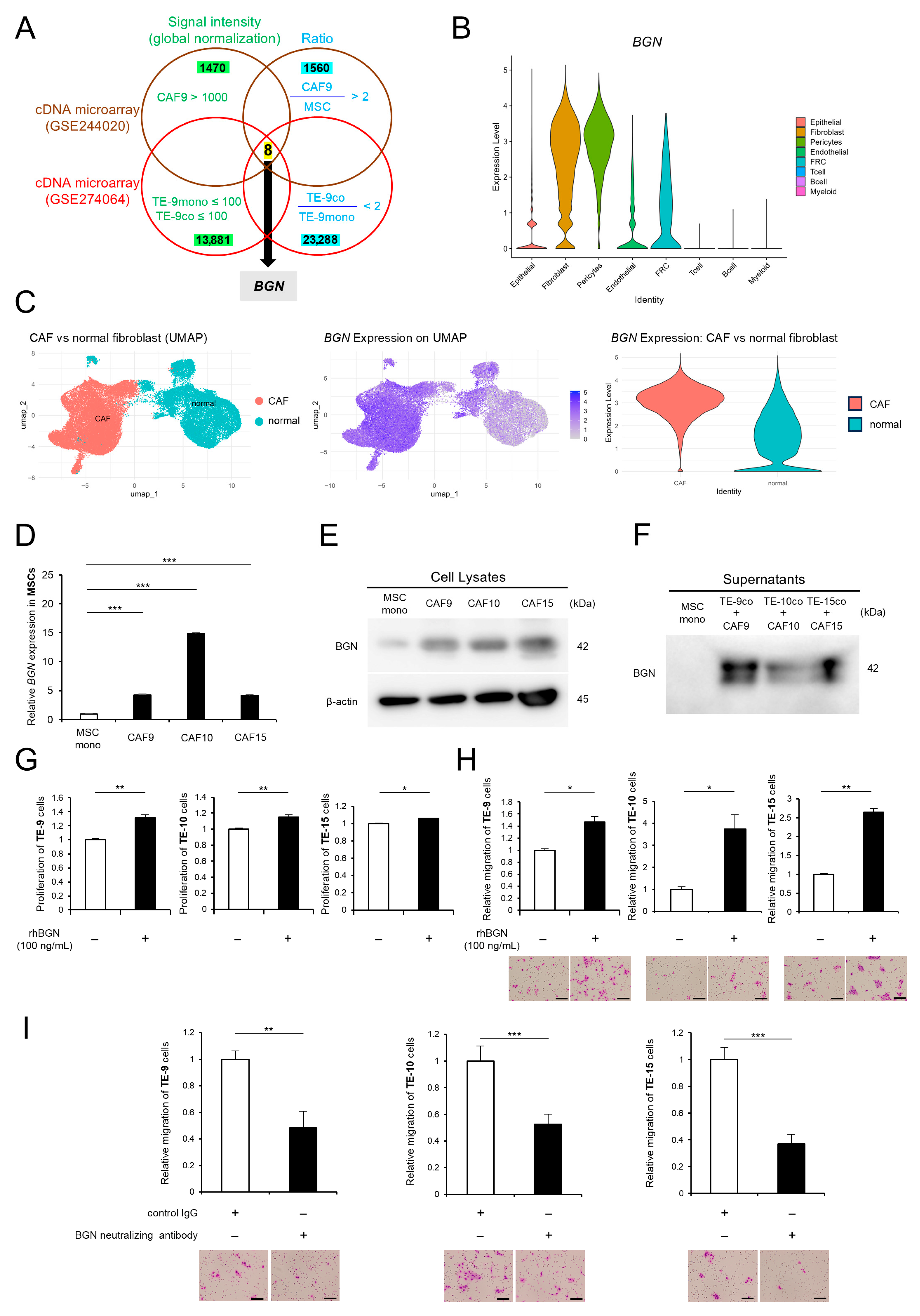 Chicago/Turabian StyleYokoo, Hiroki, Yu-ichiro Koma, Naozane Nomura, Rikuya Torigoe, Masaki Omori, Takashi Nakanishi, Shoji Miyako, Takaaki Nakanishi, Takayuki Kodama, Manabu Shigeoka, and et al. 2025. "BGN Secreted by Cancer-Associated Fibroblasts Promotes Esophageal Squamous Cell Carcinoma Progression via Activation of TLR4-Mediated Erk and NF-κB Signaling Pathways" International Journal of Molecular Sciences 26, no. 24: 12024. https://doi.org/10.3390/ijms262412024