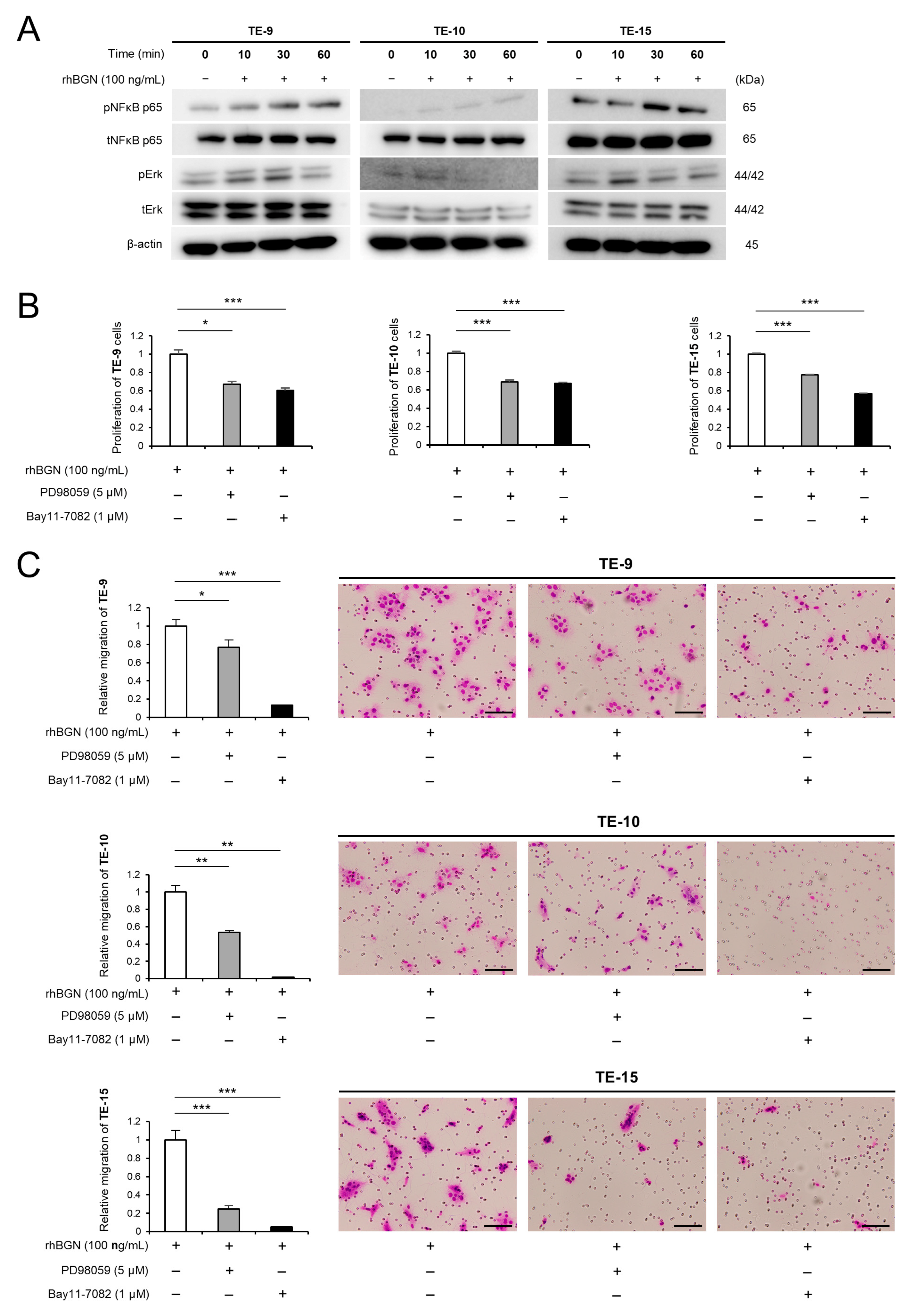 2.3. BGN Promotes the Proliferation and Migration of ESCC Cells Through the Erk and NF-κB Signaling Pathways