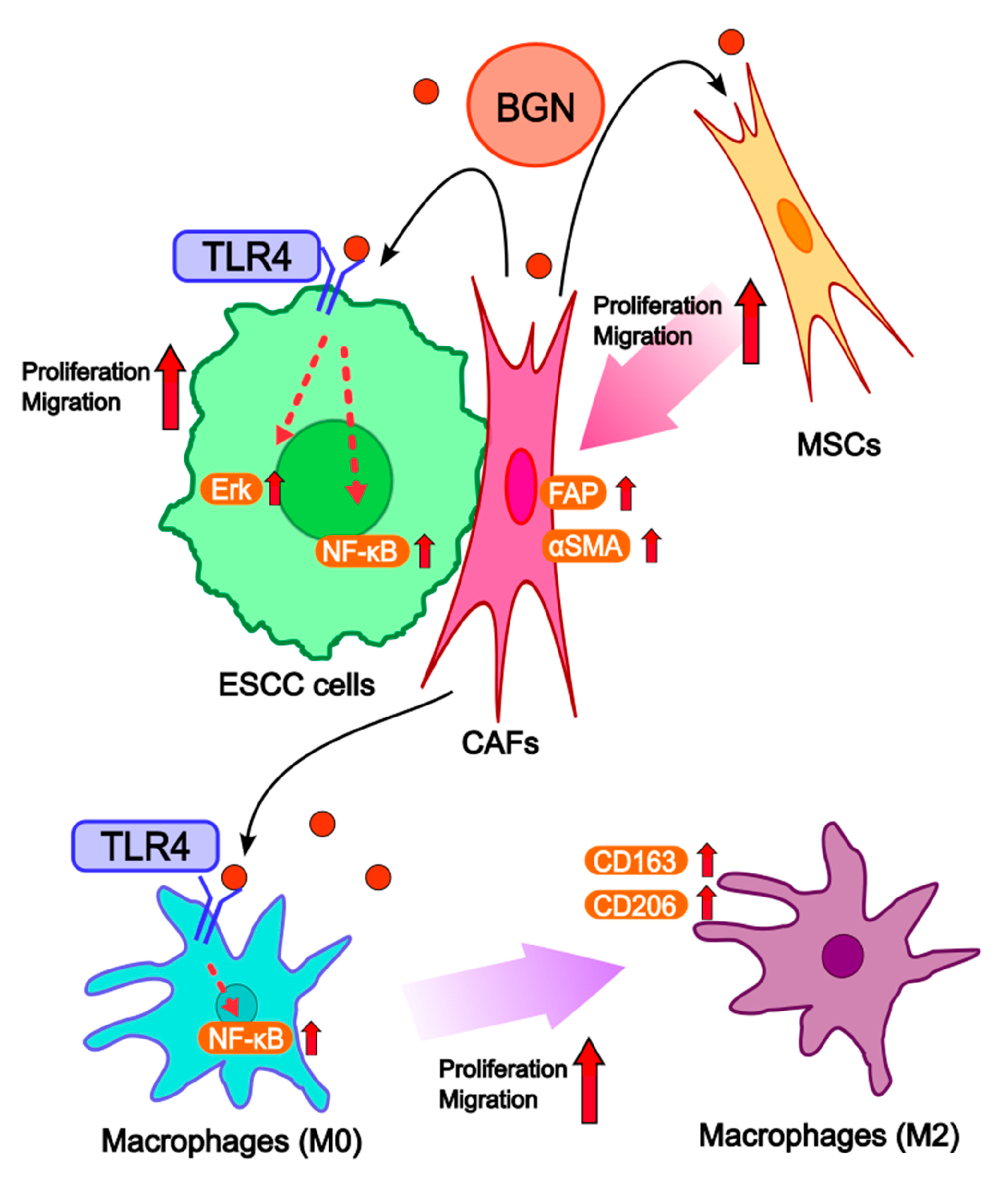 Yokoo H, Koma Y-i, Nomura N, Torigoe R, Omori M, Nakanishi T, Miyako S, Nakanishi T, Kodama T, Shigeoka M, et al. BGN Secreted by Cancer-Associated Fibroblasts Promotes Esophageal Squamous Cell Carcinoma Progression via Activation of TLR4-Mediated Erk and NF-κB Signaling Pathways. International Journal of Molecular Sciences. 2025; 26(24):12024. https://doi.org/10.3390/ijms262412024