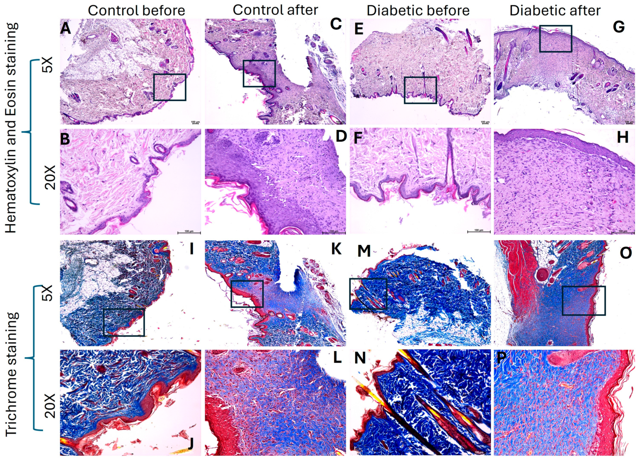 2.1. Hyperglycemia Decreases Collagen Content in Healed Tissues