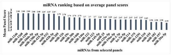 Ranking of miRNAs by their average performance score in the selected diagnostic panels.
