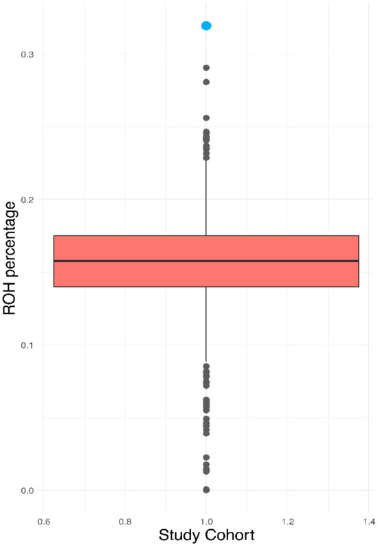 Graphical representation of the ROH values of the case [blue] and the total population.