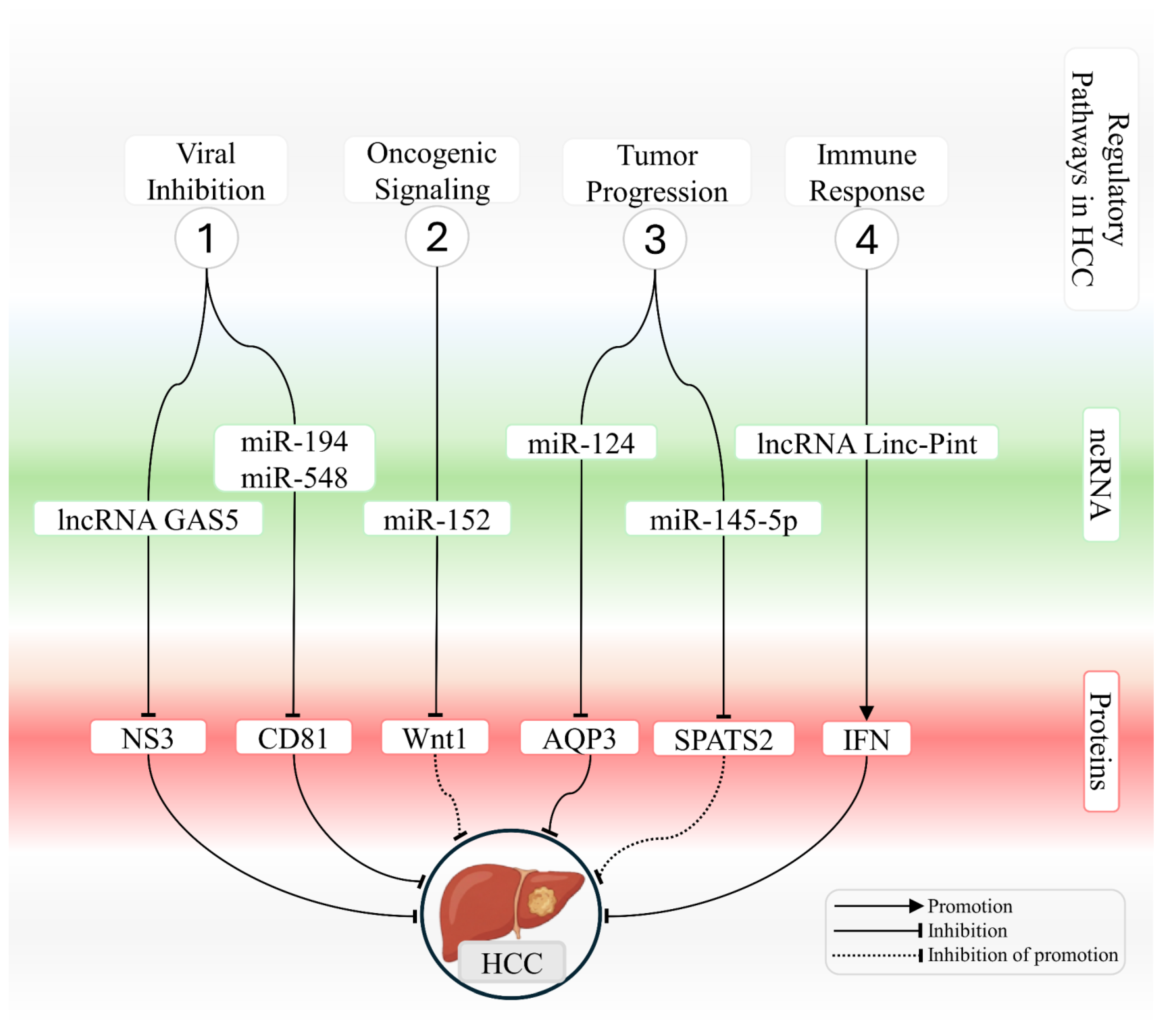 | LINC01189 | It works by sponging hsa-miR-155-5p preventing it from activating the Wnt/β-catenin pathway that leads to tumorigenicity in HCV-infected cells. | [94] |