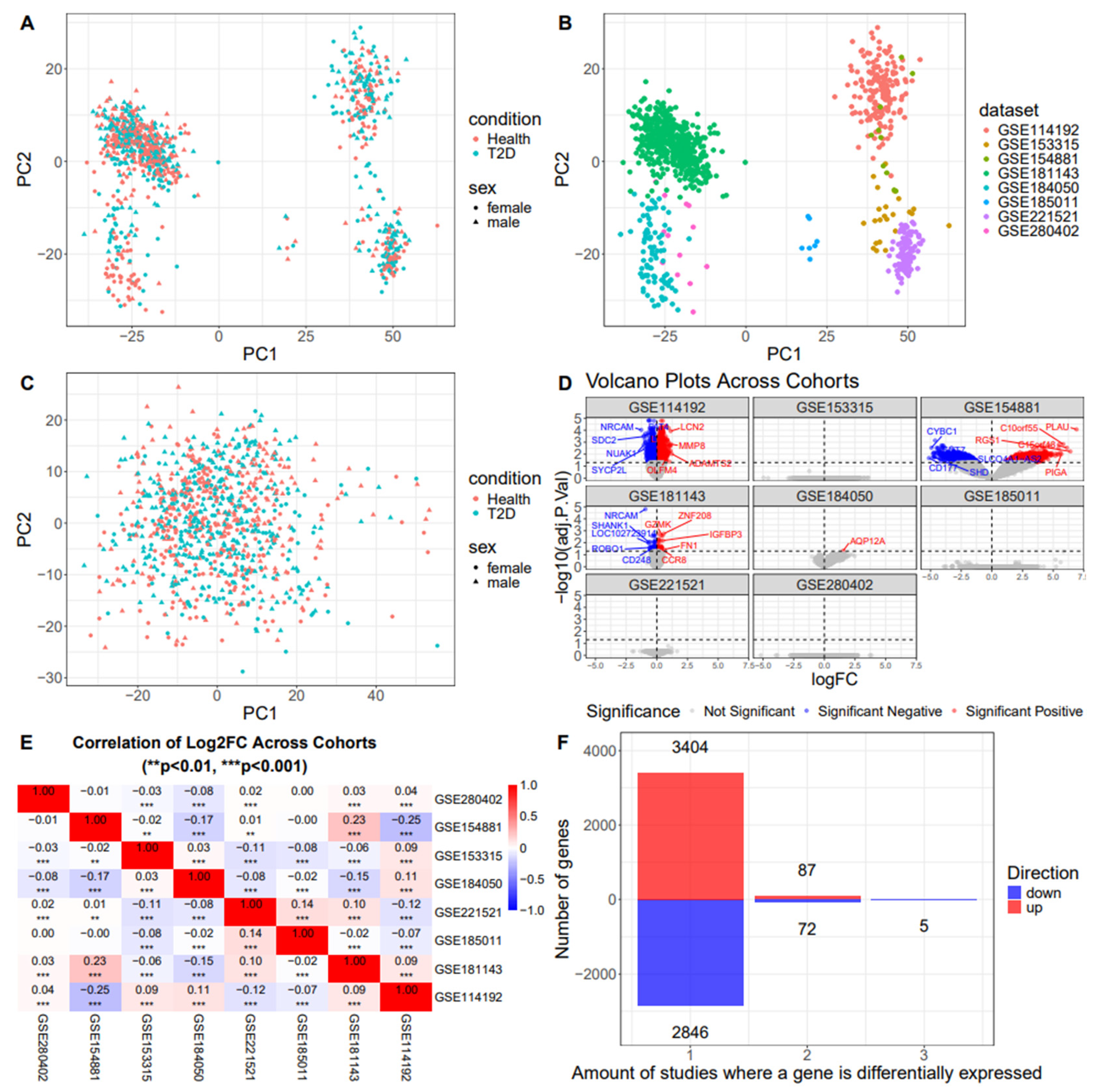 Tkachenko, A.A.; Tonyan, Z.N.; Nasykhova, Y.A.; Barbitoff, Y.A.; Renev, I.N.; Danilova, M.M.; Basipova, A.A.; Glavnova, O.B.; Polev, D.E.; Chepanov, S.V.; et al. Cross-Study Meta-Analysis of Blood Transcriptomes in Type 2 Diabetes. Int. J. Mol. Sci. 2025, 26, 12046. https://doi.org/10.3390/ijms262412046