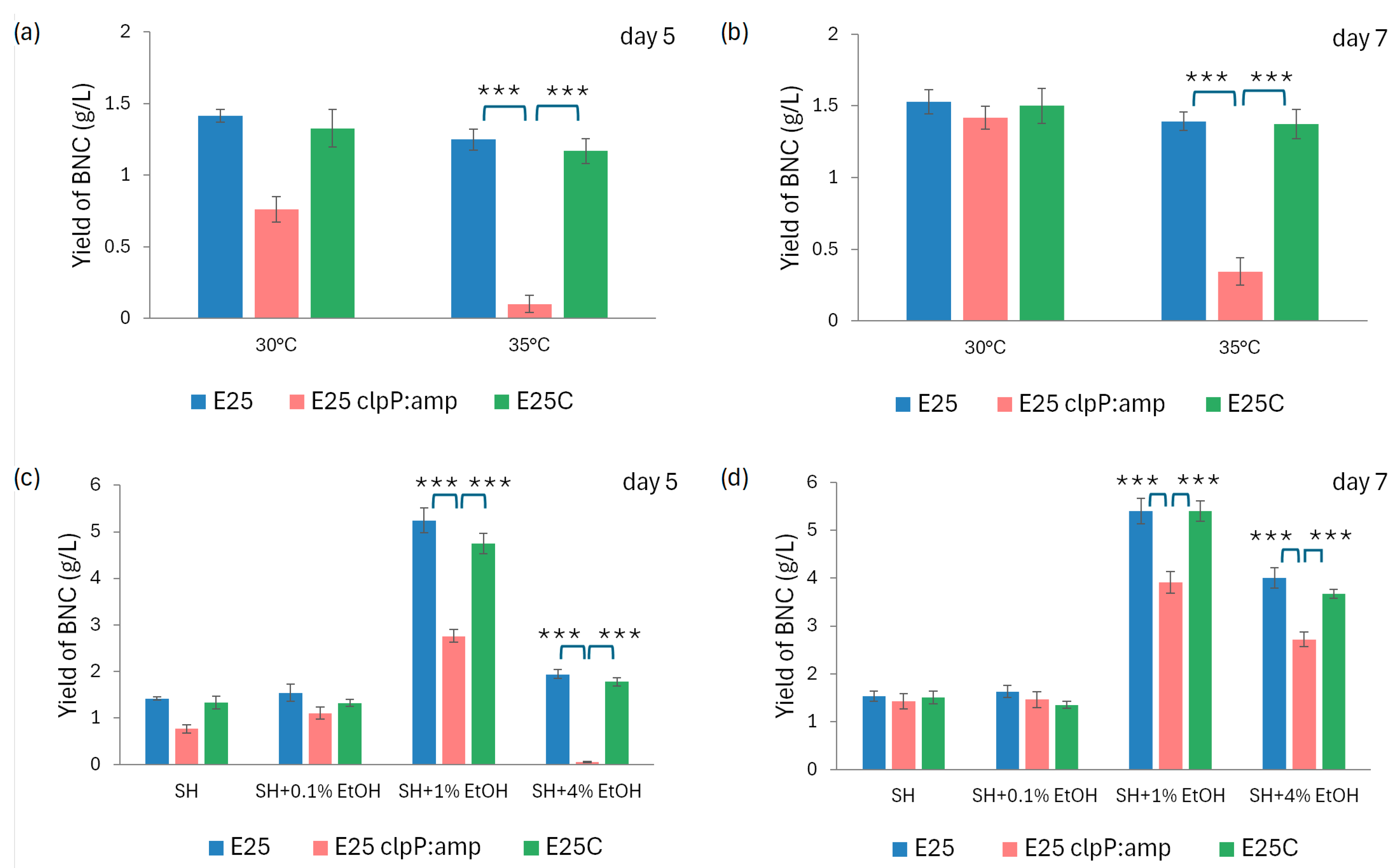 - Ryngajłło, M.; Jacek, P.; Cielecka, I.; Kalinowska, H.; Bielecki, S. Effect of Ethanol Supplementation on the Transcriptional Landscape of Bionanocellulose Producer Komagataeibacter xylinus E25. Appl. Microbiol. Biotechnol. 2019, 103, 6673–6688. [Google Scholar] [CrossRef]