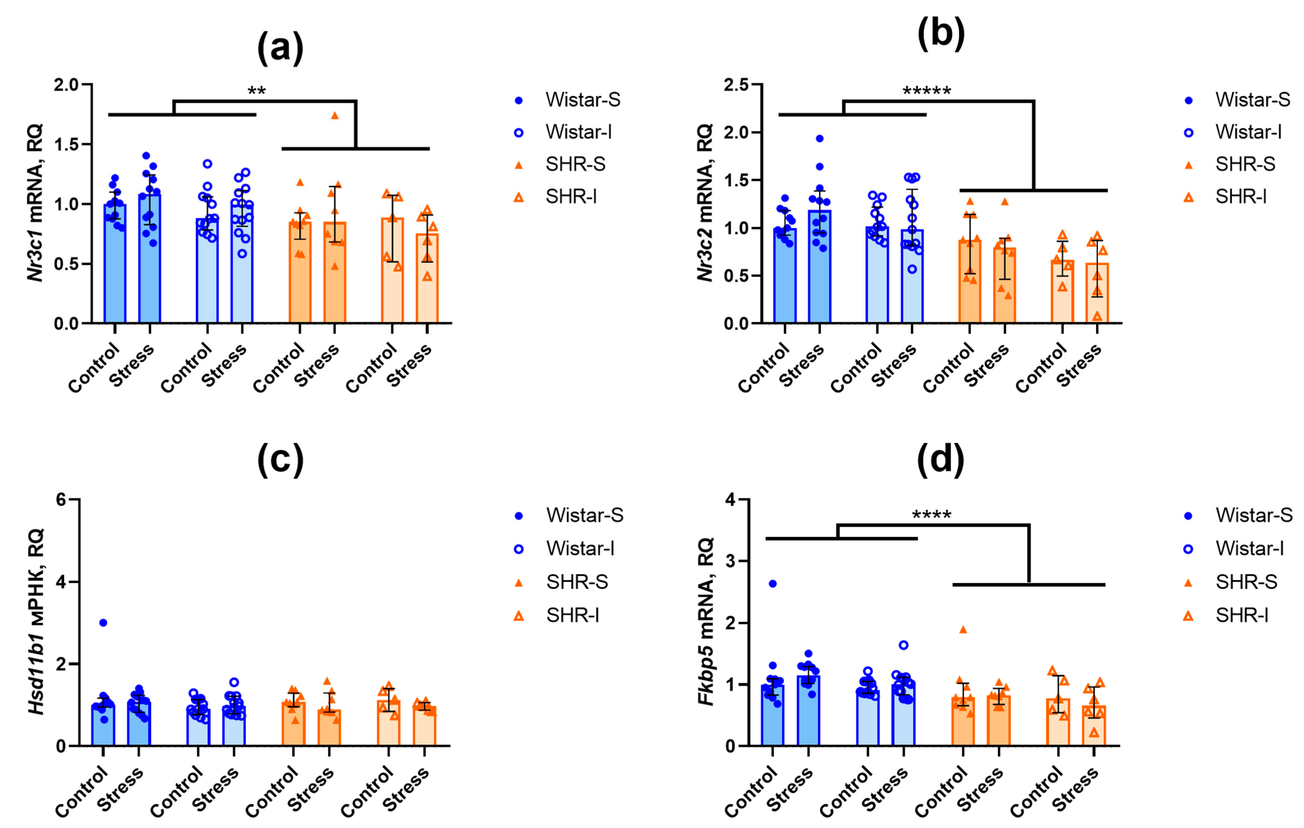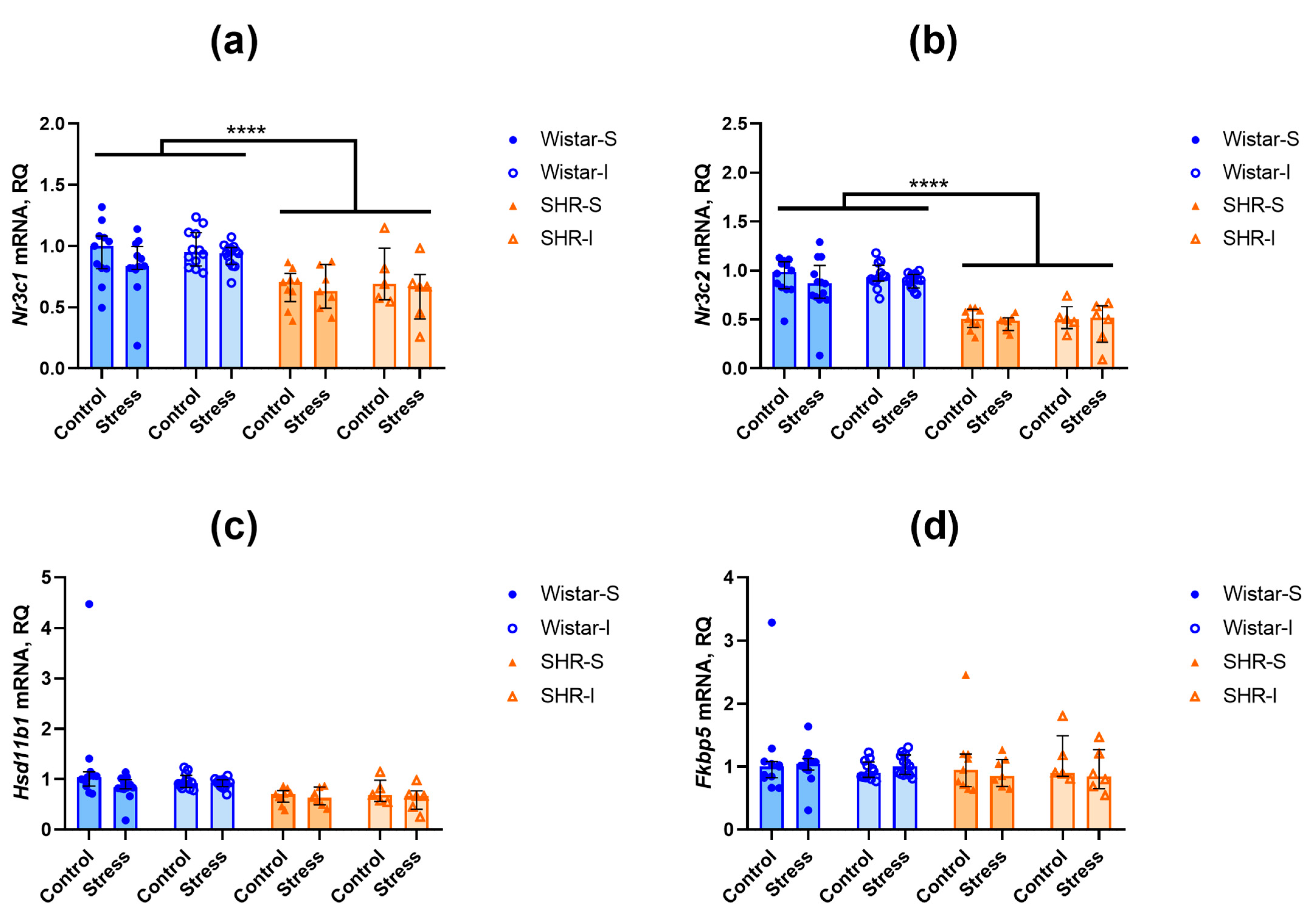 Kvichansky, A.; Tretyakova, L.; Moiseeva, Y.; Ovchinnikova, V.; Mamedova, D.; Nedogreeva, O.; Lazareva, N.; Gulyaeva, N.; Stepanichev, M. Glucocorticoid Signaling-Associated Gene Expression in the Hippocampus and Frontal Cortex of Chronically Isolated Normotensive and Hypertensive Rats and the Responsiveness to Acute Restraint Stress. Int. J. Mol. Sci. 2025, 26, 12050. https://doi.org/10.3390/ijms262412050