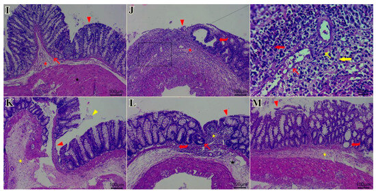 Microscopic analysis of H&E-stained colonic sections confirmed the therapeutic effects of BRLE. Control colons exhibited normal histoarchitecture (Figure 5I). In contrast, the diseased control group showed severe mucosal erosion, inflammatory cell infiltration, edema, and muscular damage, consistent with colitis (Figure 5J).