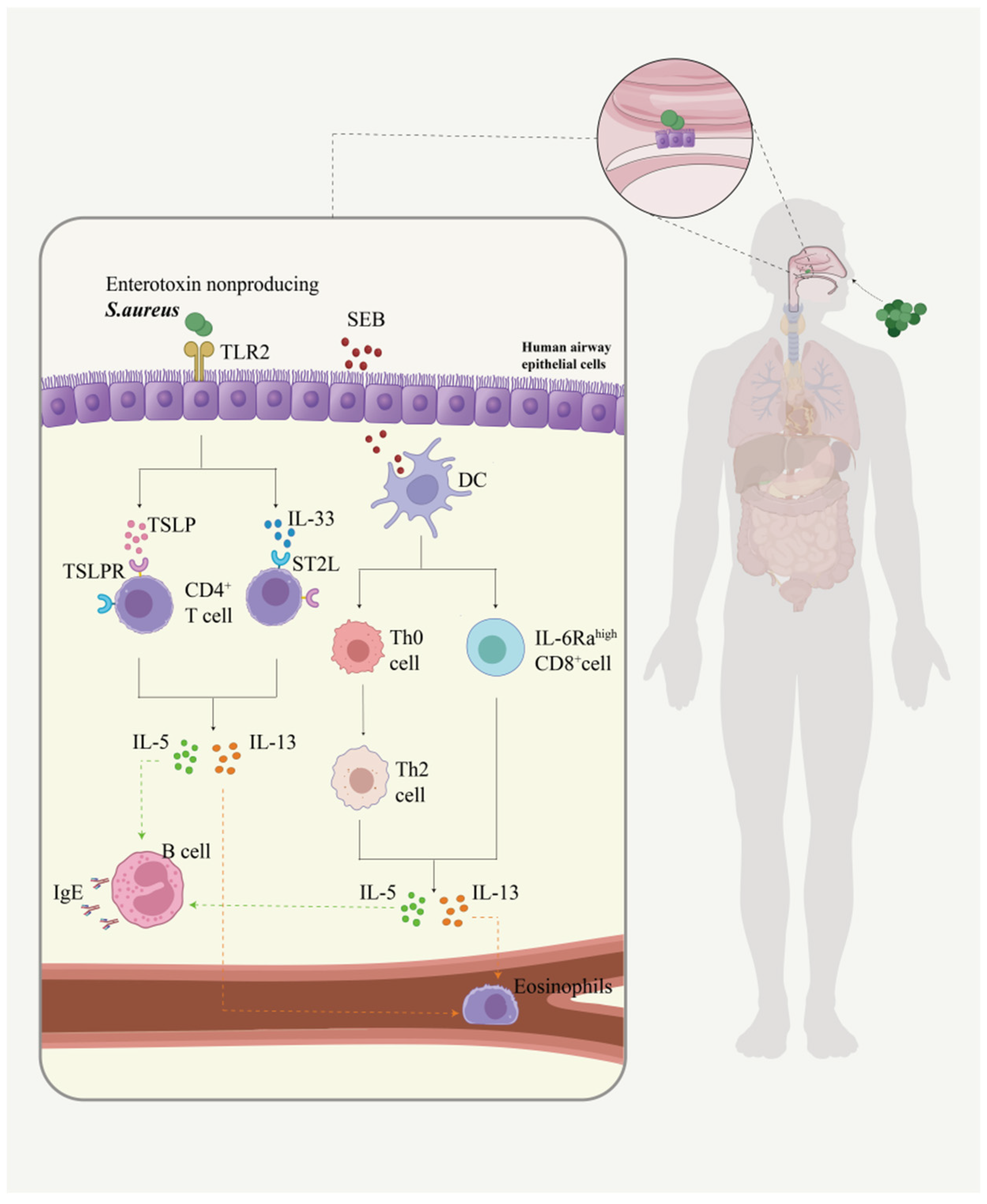 - Mandron, M.; Ariès, M.F.; Brehm, R.D.; Tranter, H.S.; Acharya, K.R.; Charveron, M.; Davrinche, C. Human dendritic cells conditioned with Staphylococcus aureus enterotoxin B promote TH2 cell polarization. J. Allergy Clin. Immunol. 2006, 117, 1141–1147. [Google Scholar] [CrossRef]