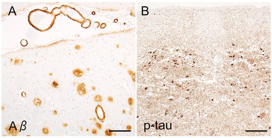 - Kovacs, G.G.; Katsumata, Y.; Wu, X.; Aung, K.Z.; Fardo, D.W.; Forrest, S.L.; Alzheimer’s Disease Genetics Consortium; Nelson, P.T. Amyloid-β predominant Alzheimer’s disease neuropathologic change. Brain 2025, 148, 401–407. [Google Scholar] [CrossRef] [PubMed]