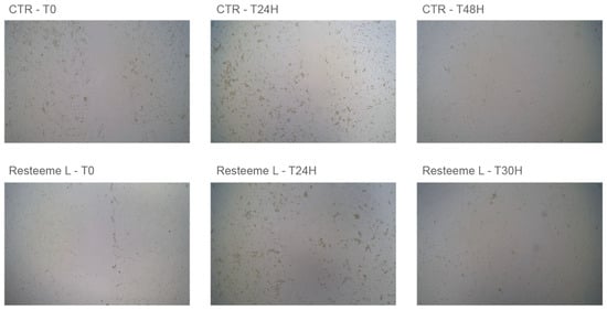 Table 4. p-values (Student’s t-test) for Resteem L-treated cultures vs. baseline (T0) and vs. control (CTR−). Values exactly as reported in the original dataset.