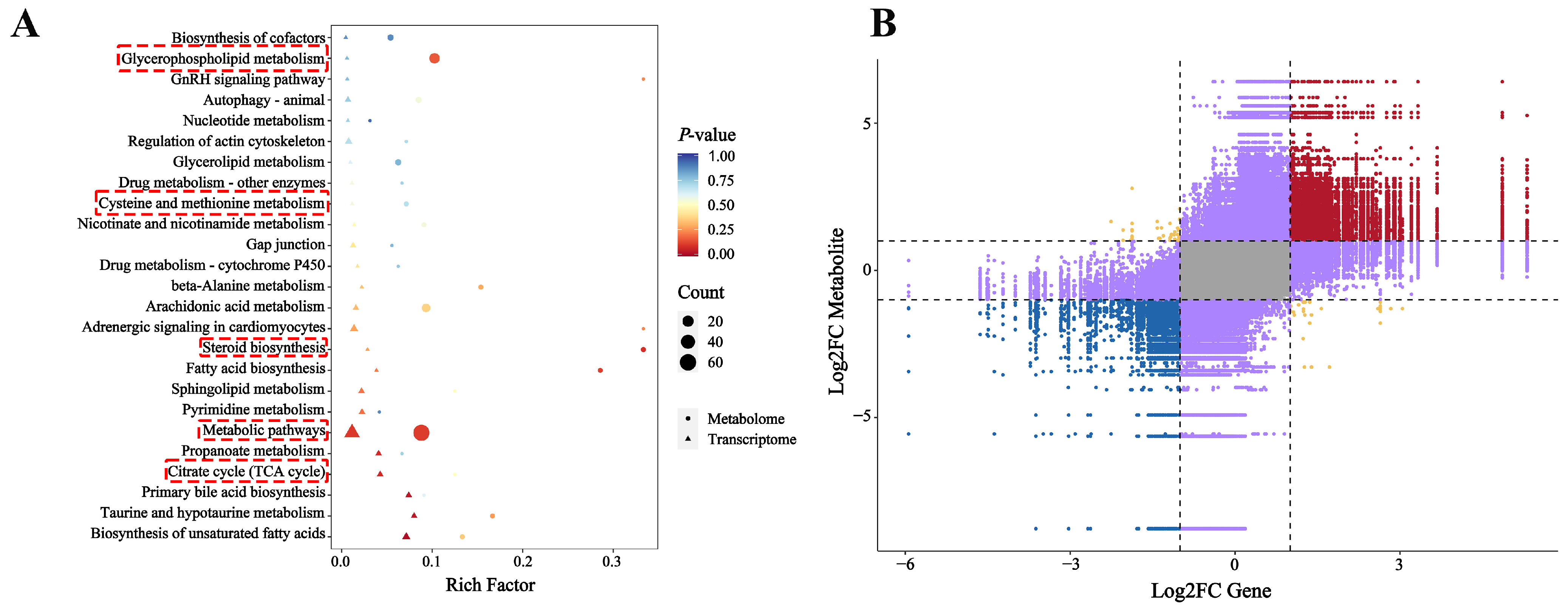 4.7. Integrated Transcriptome and Metabolome Analysis