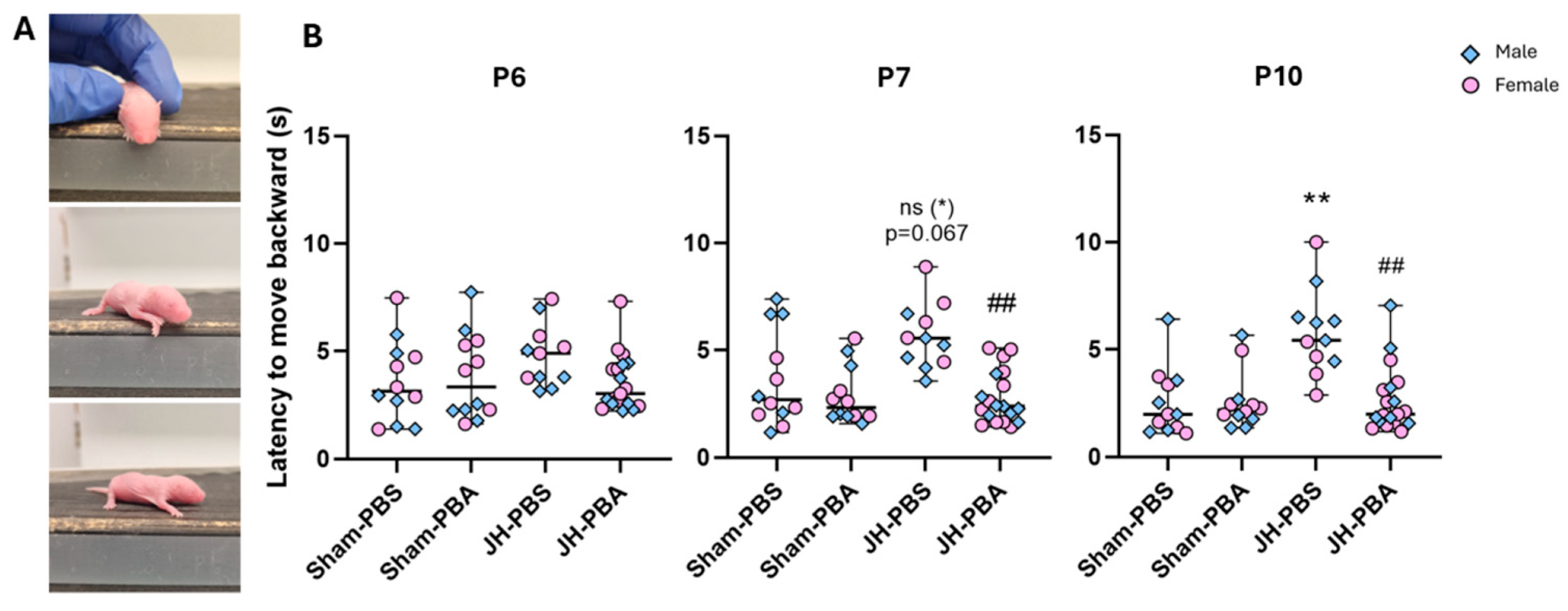 - Nguyen, A.T.; Armstrong, E.A.; Yager, J.Y. Neurodevelopmental Reflex Testing in Neonatal Rat Pups. J. Vis. Exp. 2017, 122, e55261. [Google Scholar] [CrossRef]