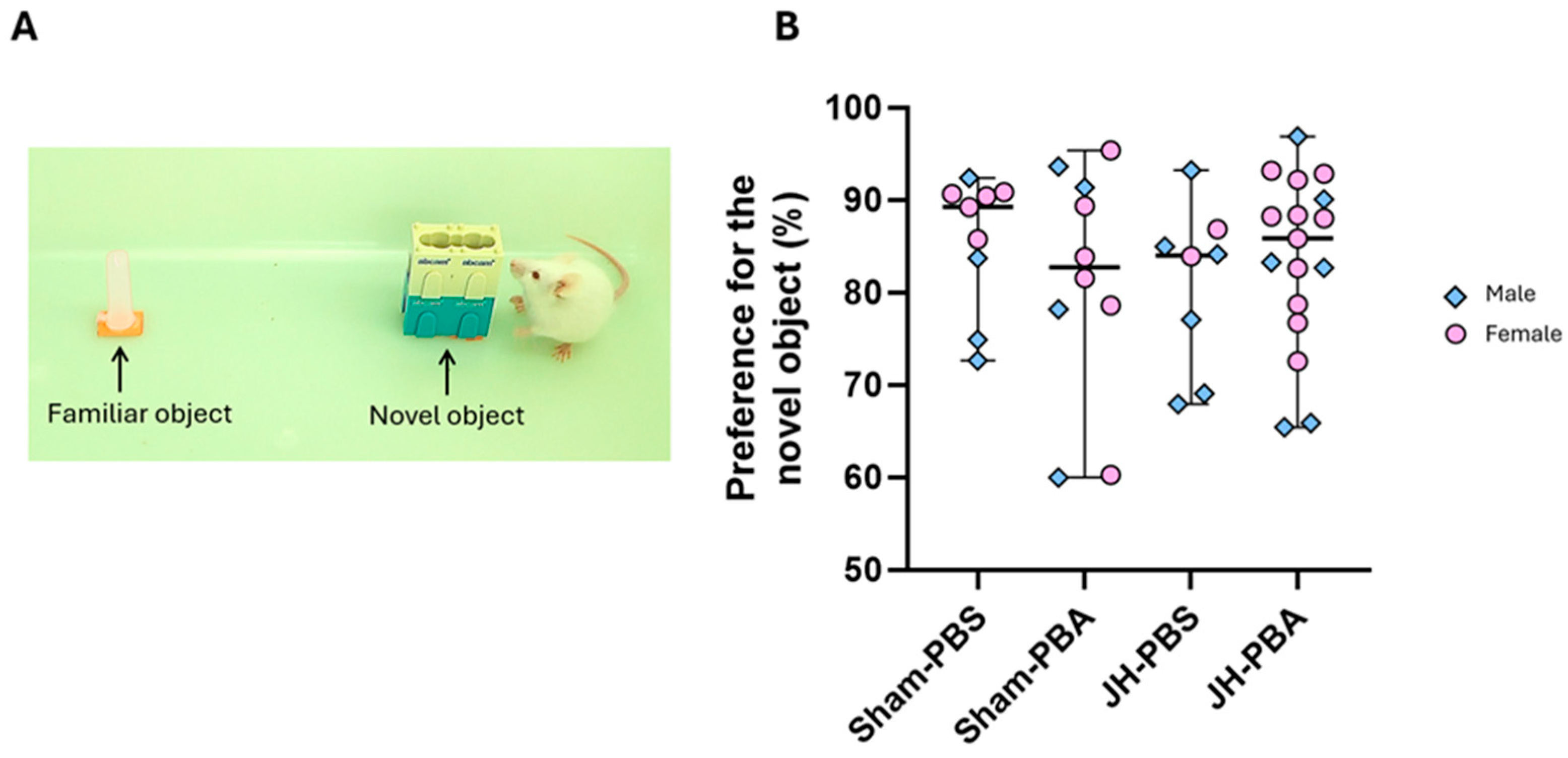 - Lueptow, L.M. Novel Object Recognition Test for the Investigation of Learning and Memory in Mice. J. Vis. Exp. 2017, 126, e55718. [Google Scholar] [CrossRef]