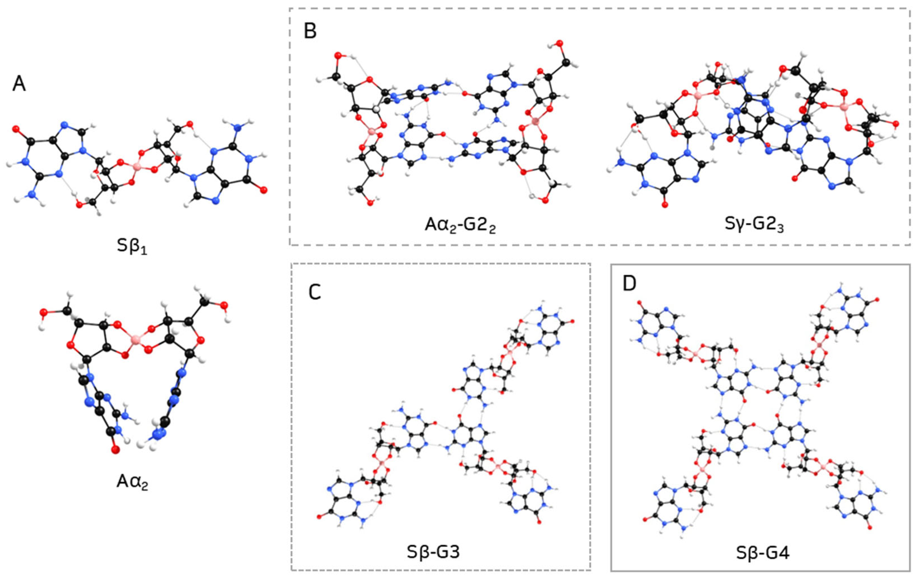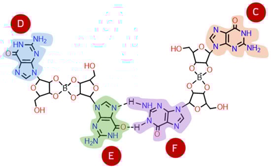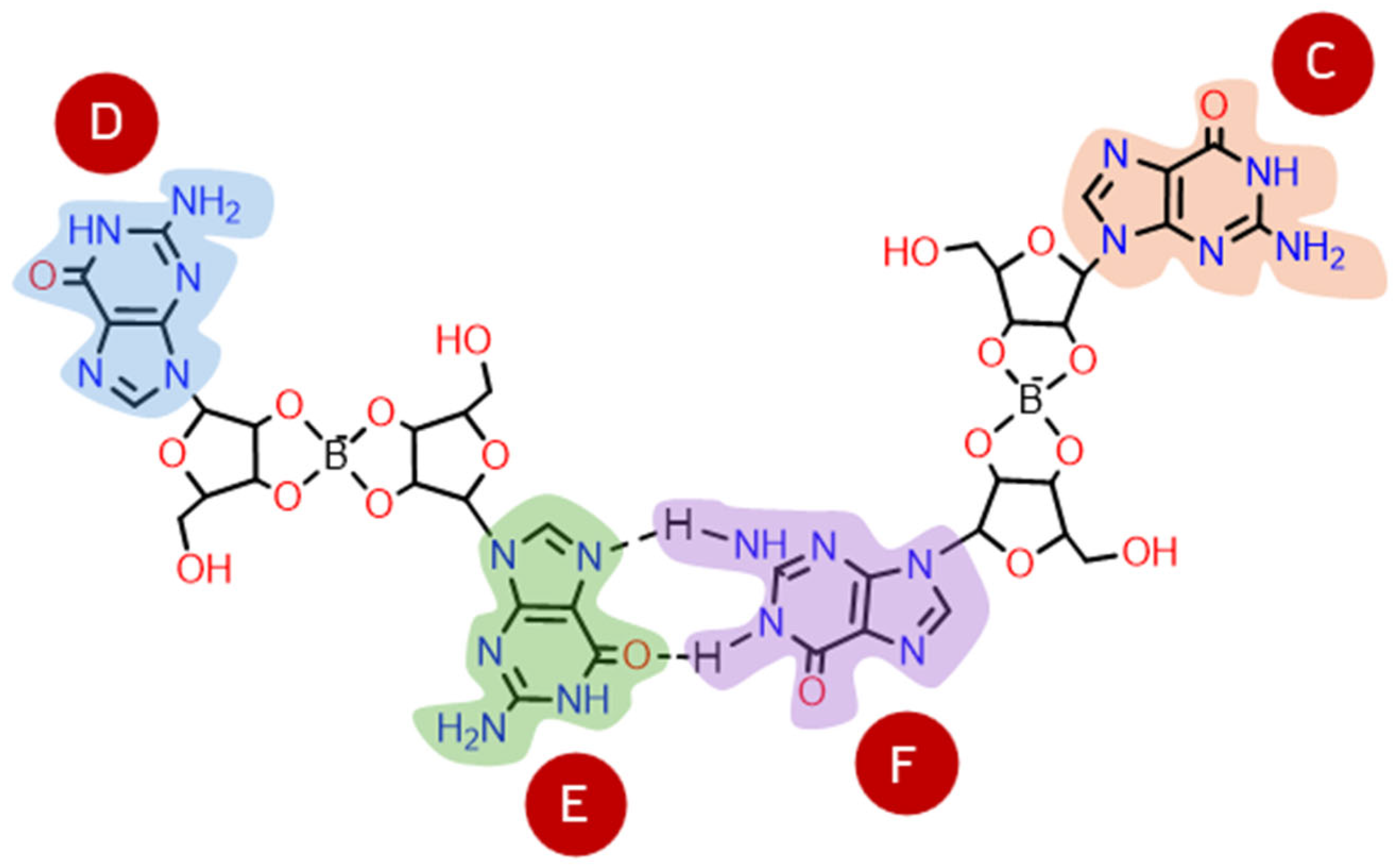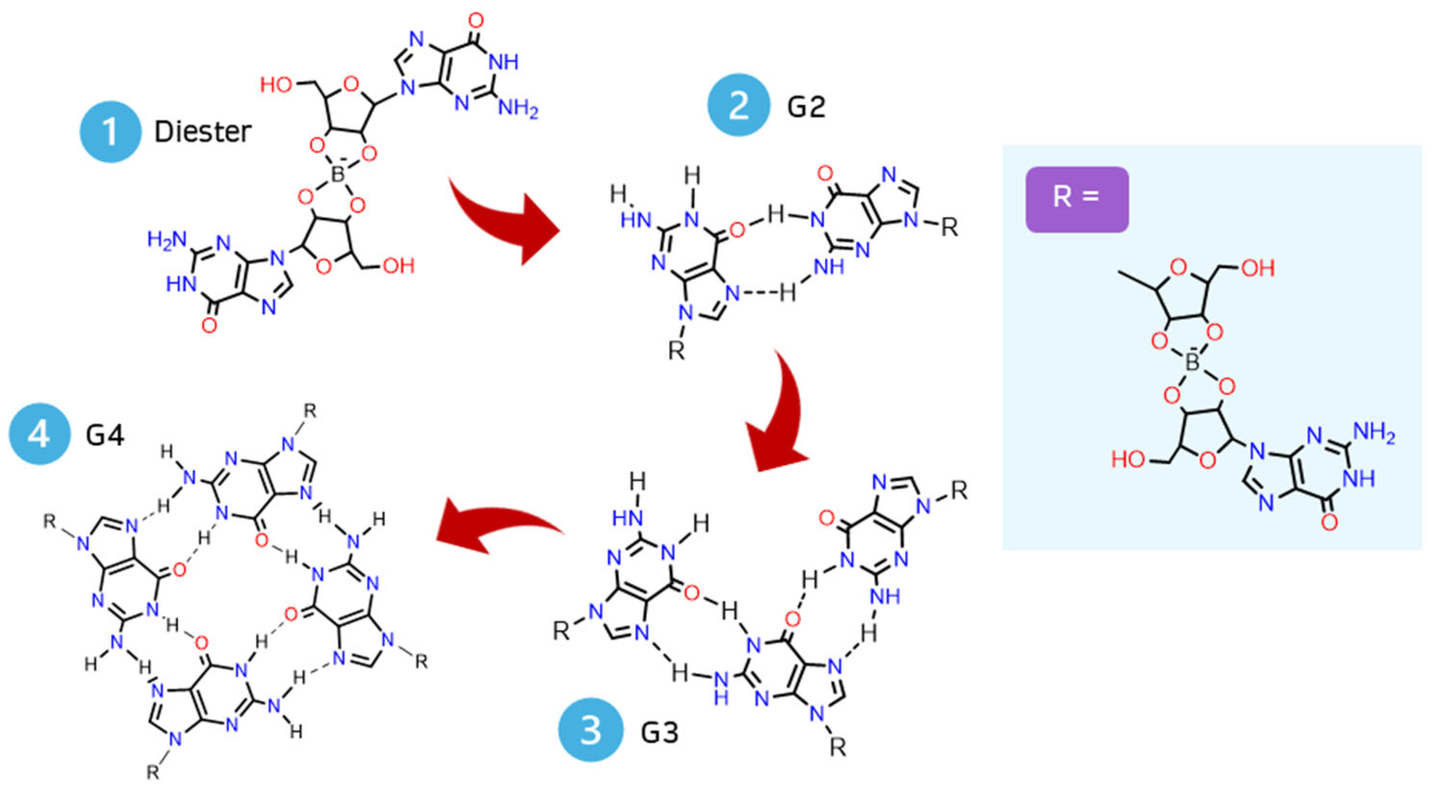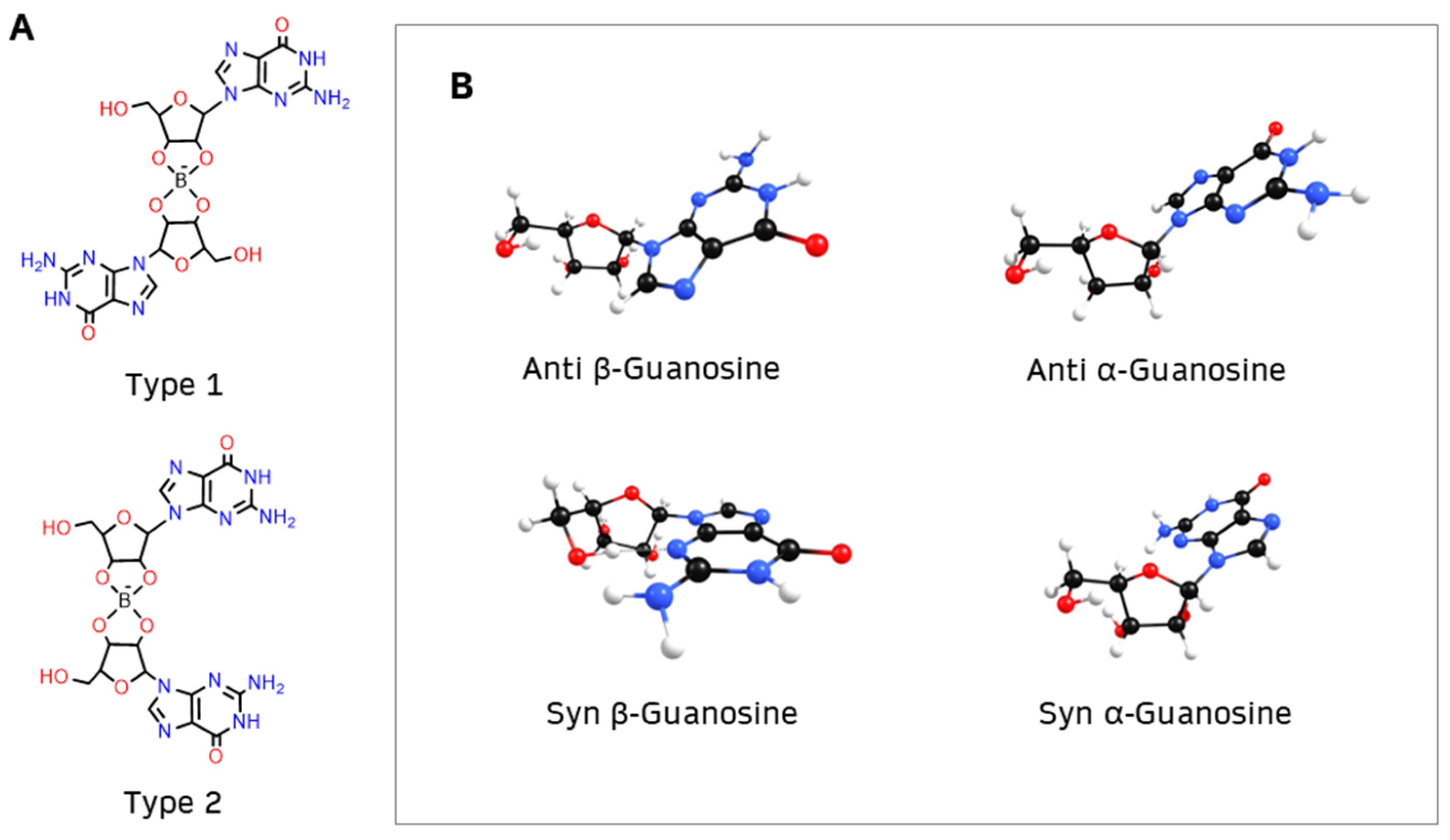 | γ | Structure formed by borate–guanosine diesters, where each diester has one α-guanosine and one β-guanosine. |