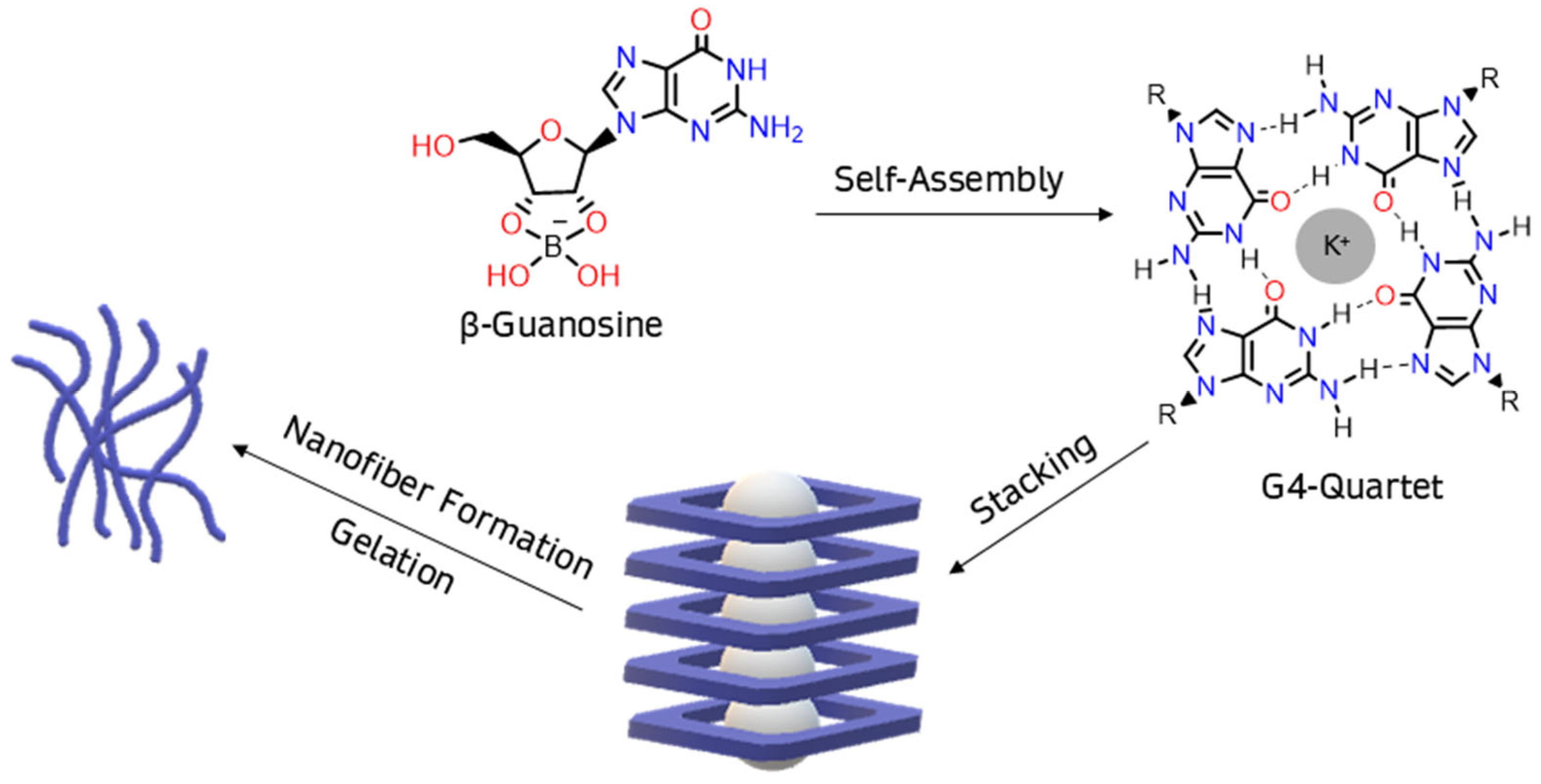 - Adhikari, B.; Shah, A.; Kraatz, H.-B. Self-assembly of guanosine and deoxy-guanosine into hydrogels: Monovalent cation guided modulation of gelation, morphology and self-healing properties. J. Mater. Chem. B 2014, 2, 4802–4810. [Google Scholar] [CrossRef] [PubMed]