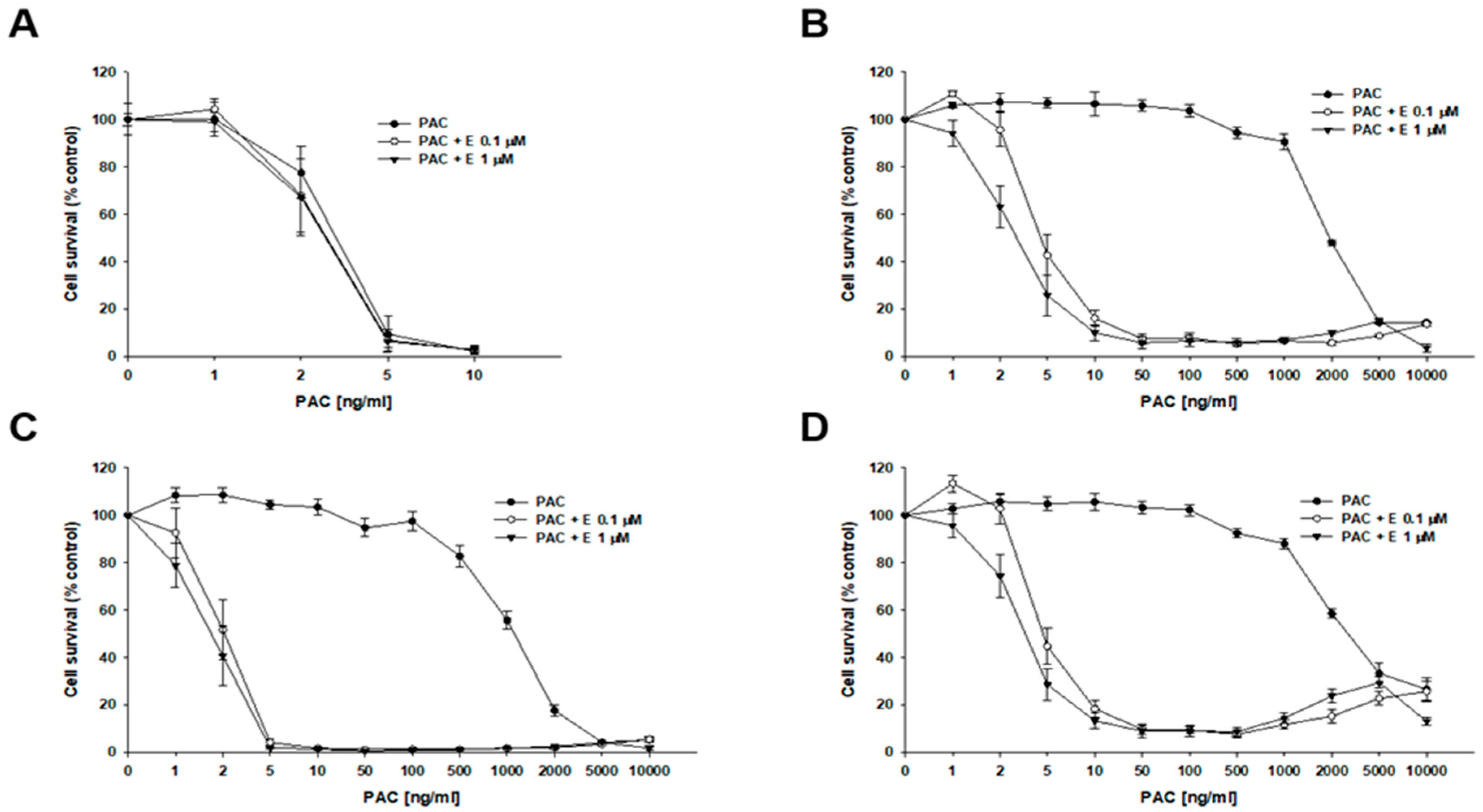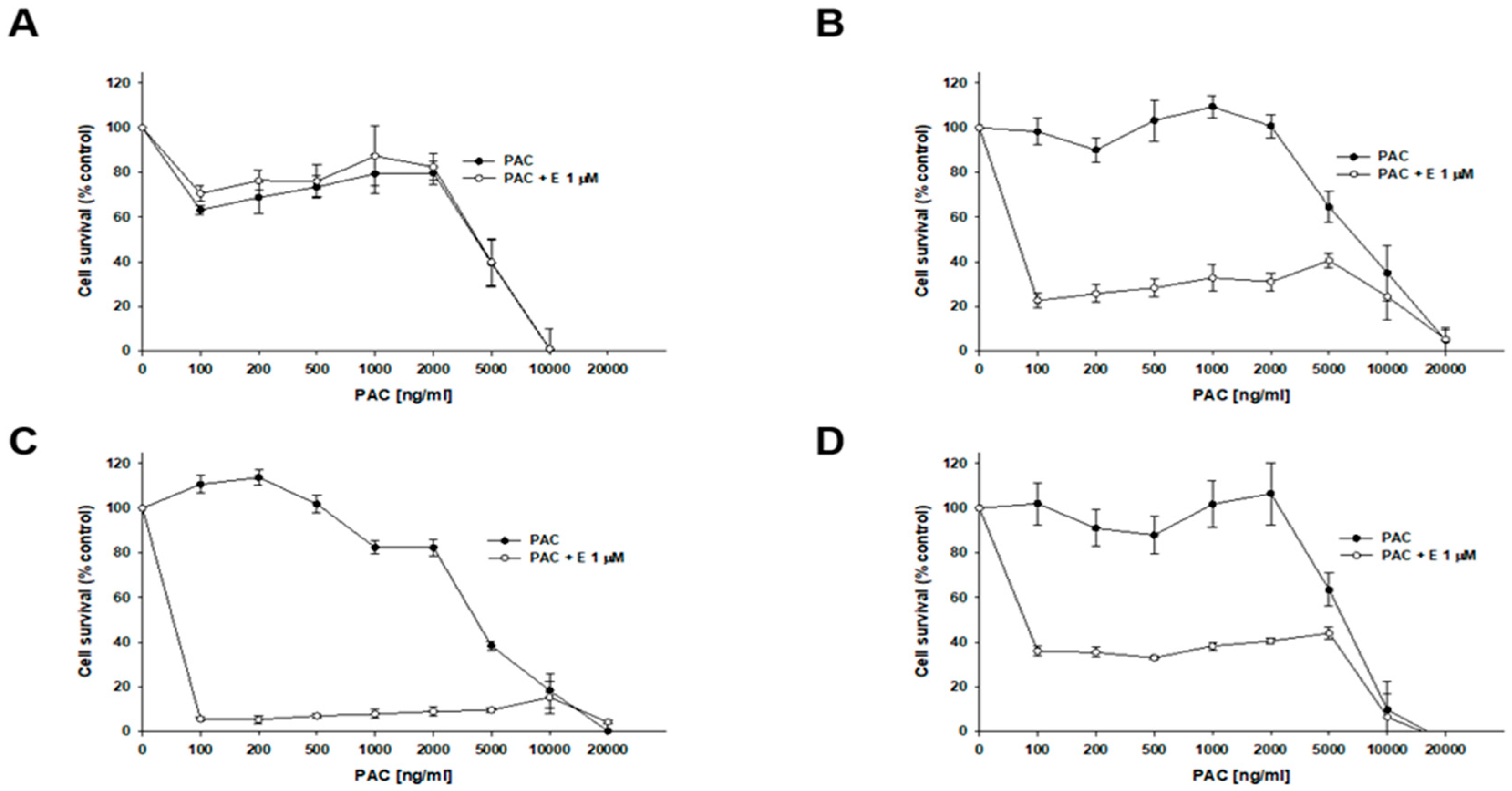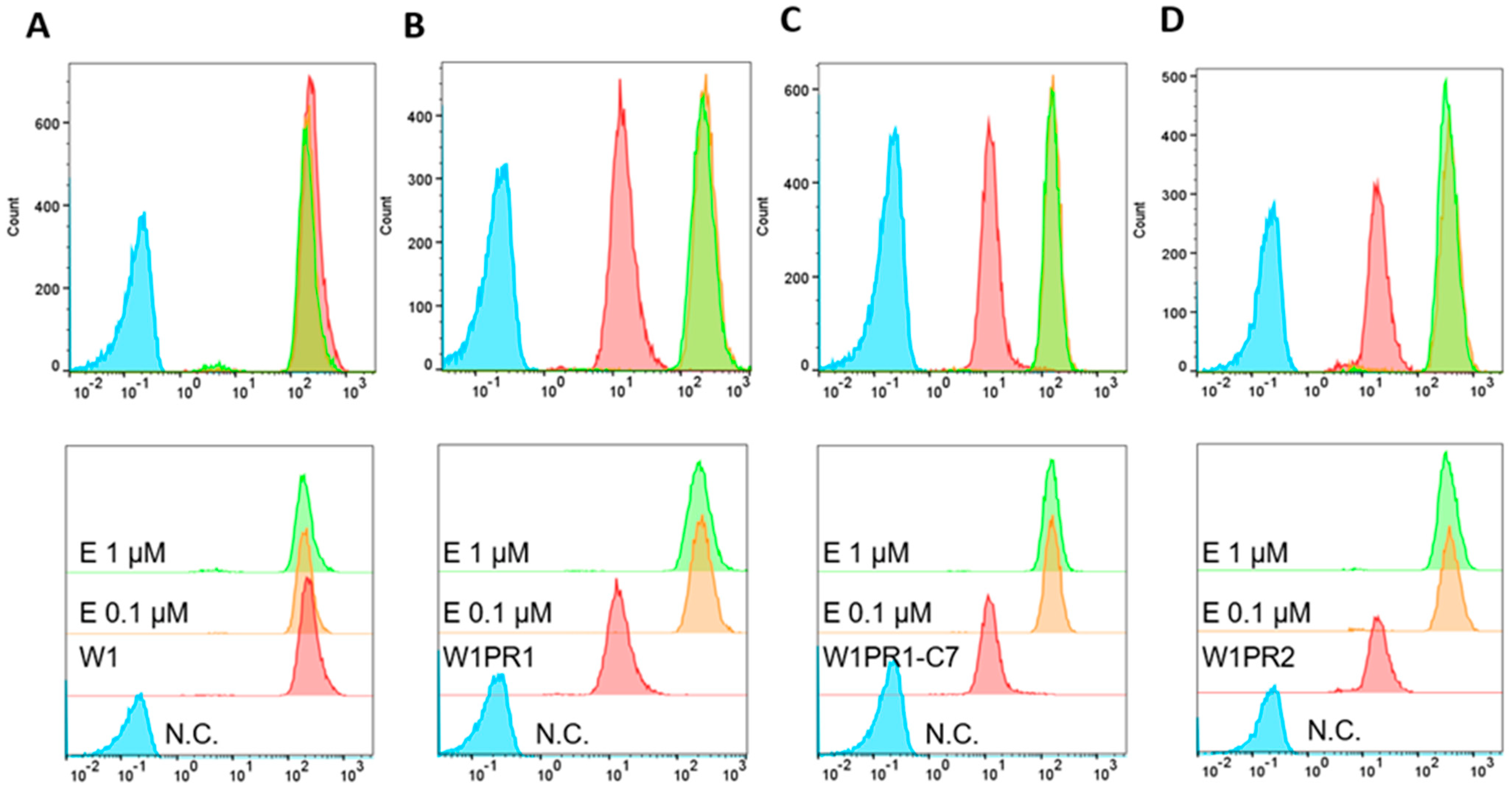 2.3. Characterization of Drug Resistance in the W1 Cell Line and PAC-Resistant Cell Lines