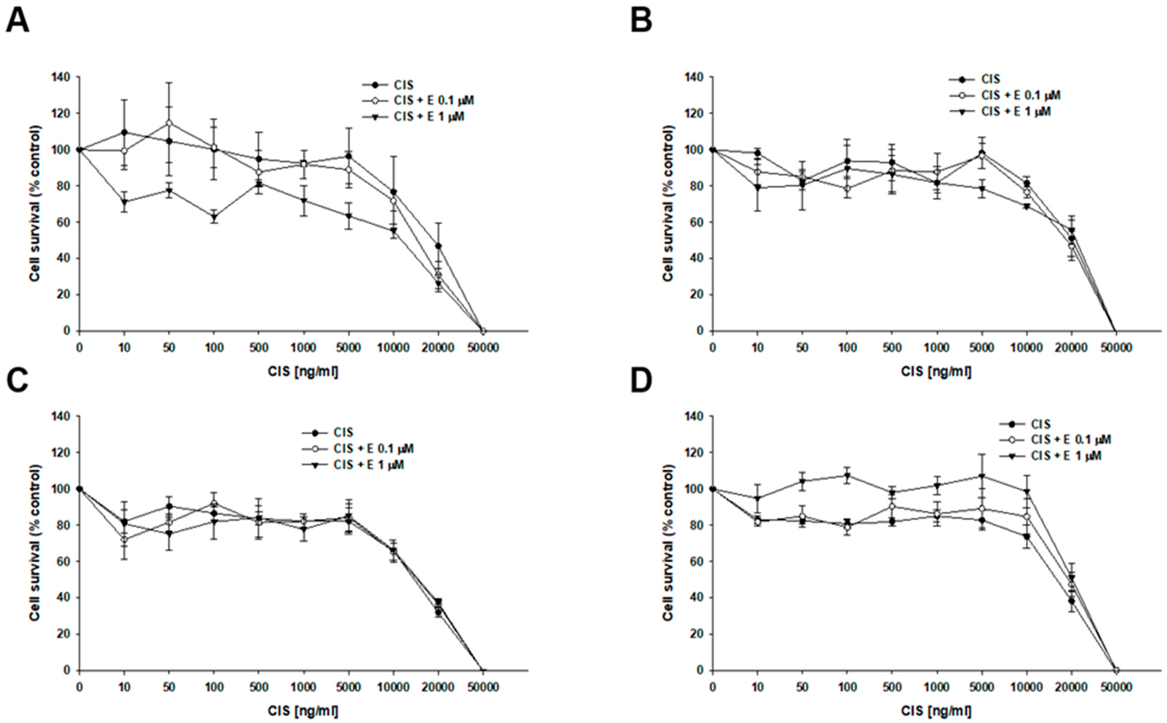 - Wantoch von Rekowski, K.; König, P.; Henze, S.; Schlesinger, M.; Zawierucha, P.; Januchowski, R.; Bendas, G. The Impact of Integrin-Mediated Matrix Adhesion on Cisplatin Resistance of W1 Ovarian Cancer Cells. Biomolecules 2019, 9, 788. [Google Scholar] [CrossRef] [PubMed]