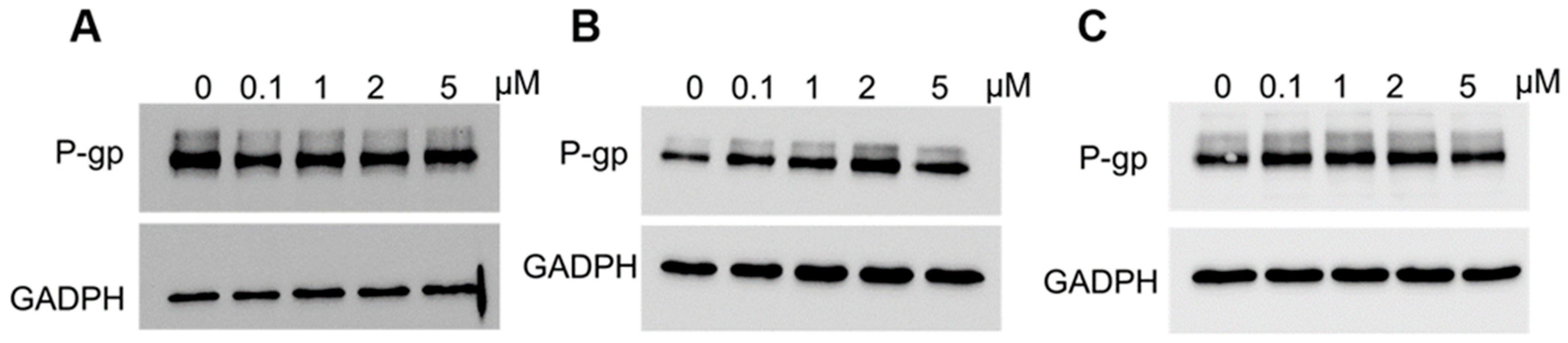 2.5. Analysis of P-gp Expression in Elacridar Treated Cell Lines