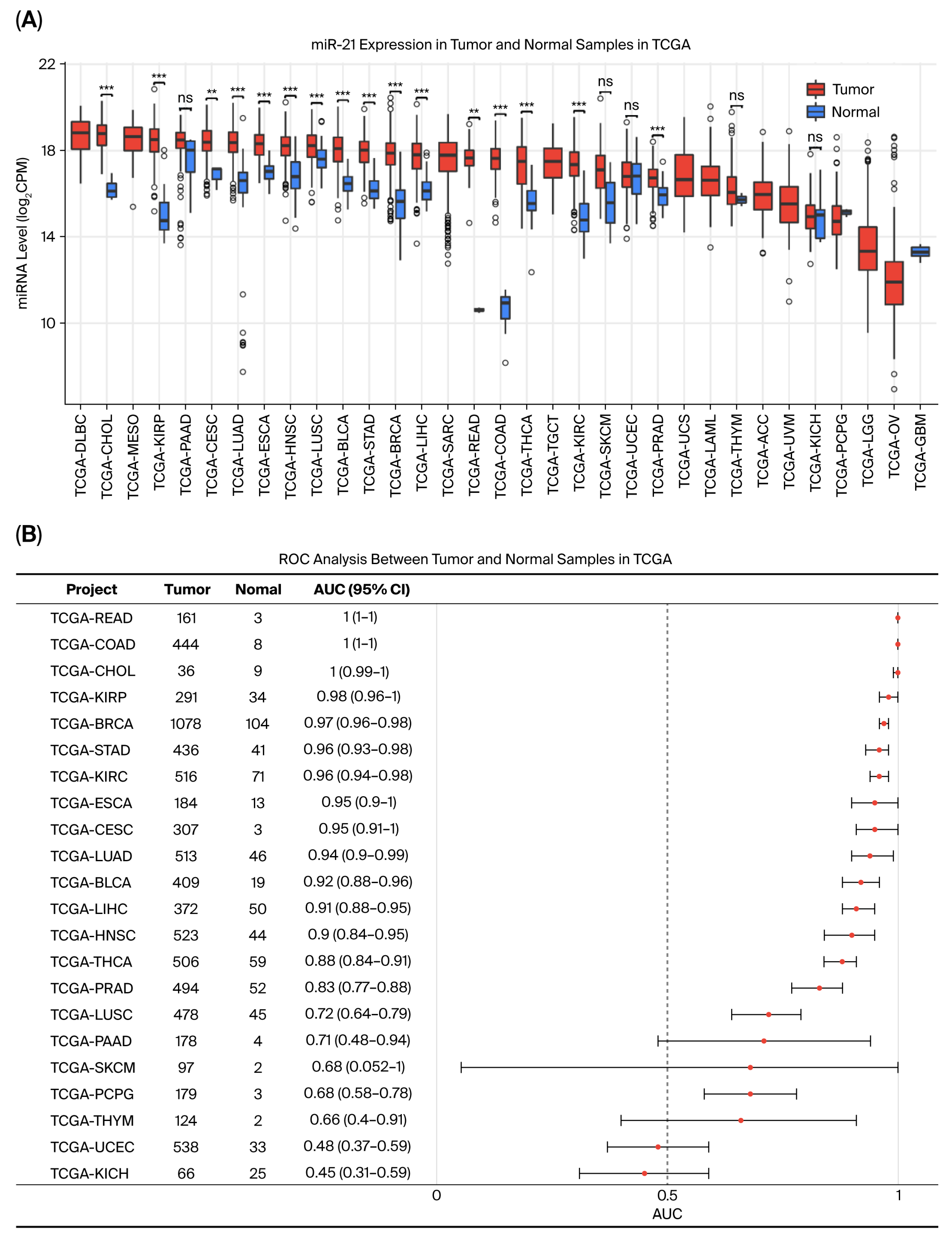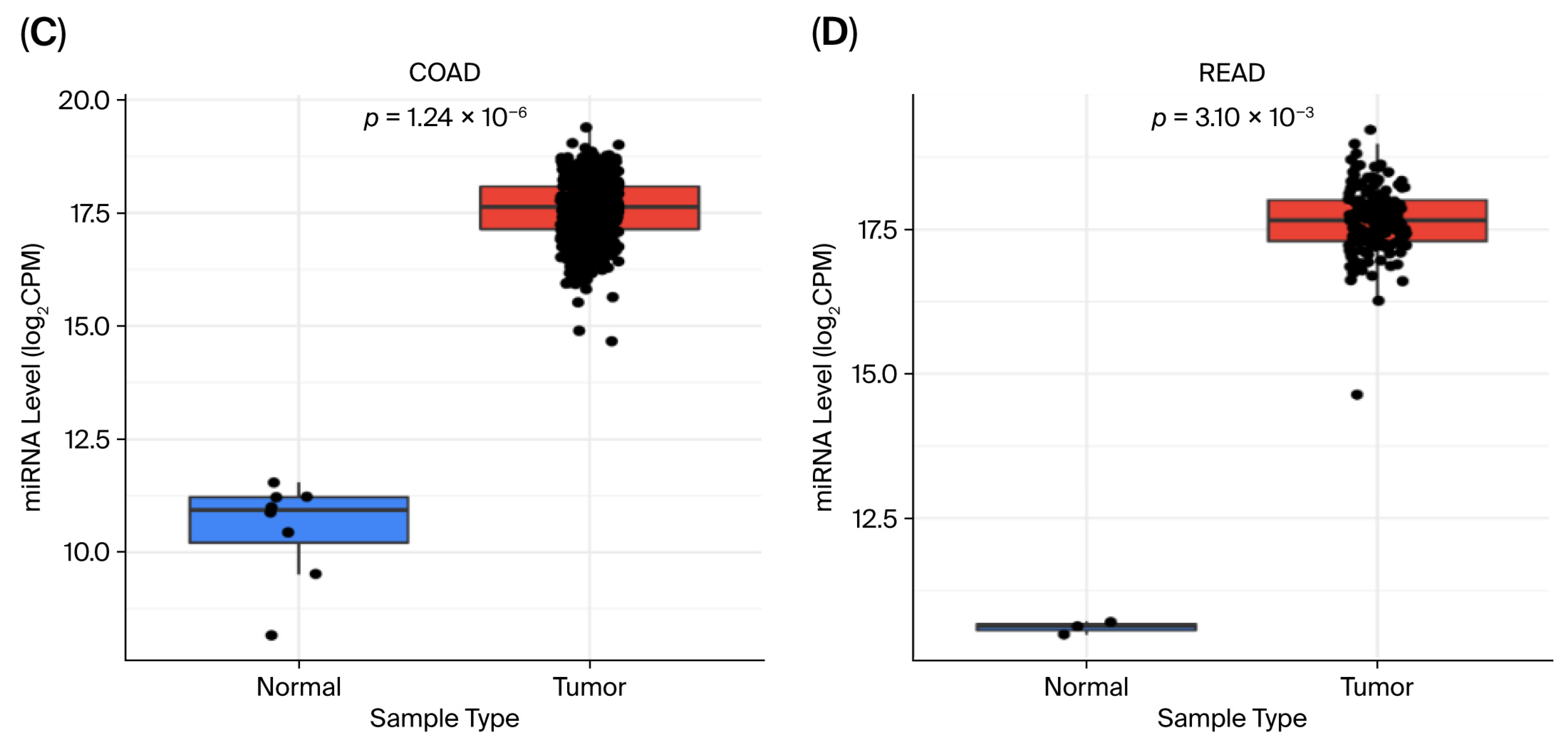 2.1. miR-21-5p Is Highly Expressed in Colorectal Cancer and Exhibits Strong Diagnostic Performance