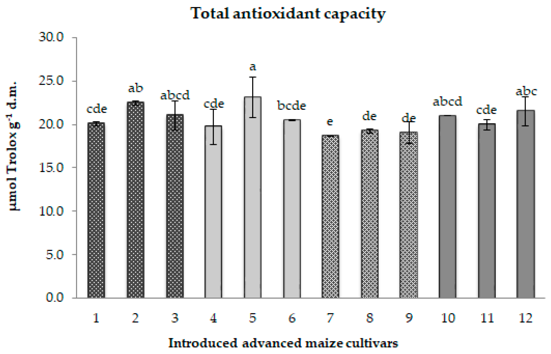 2.2.5. Analysis of the Total Antioxidant Capacity