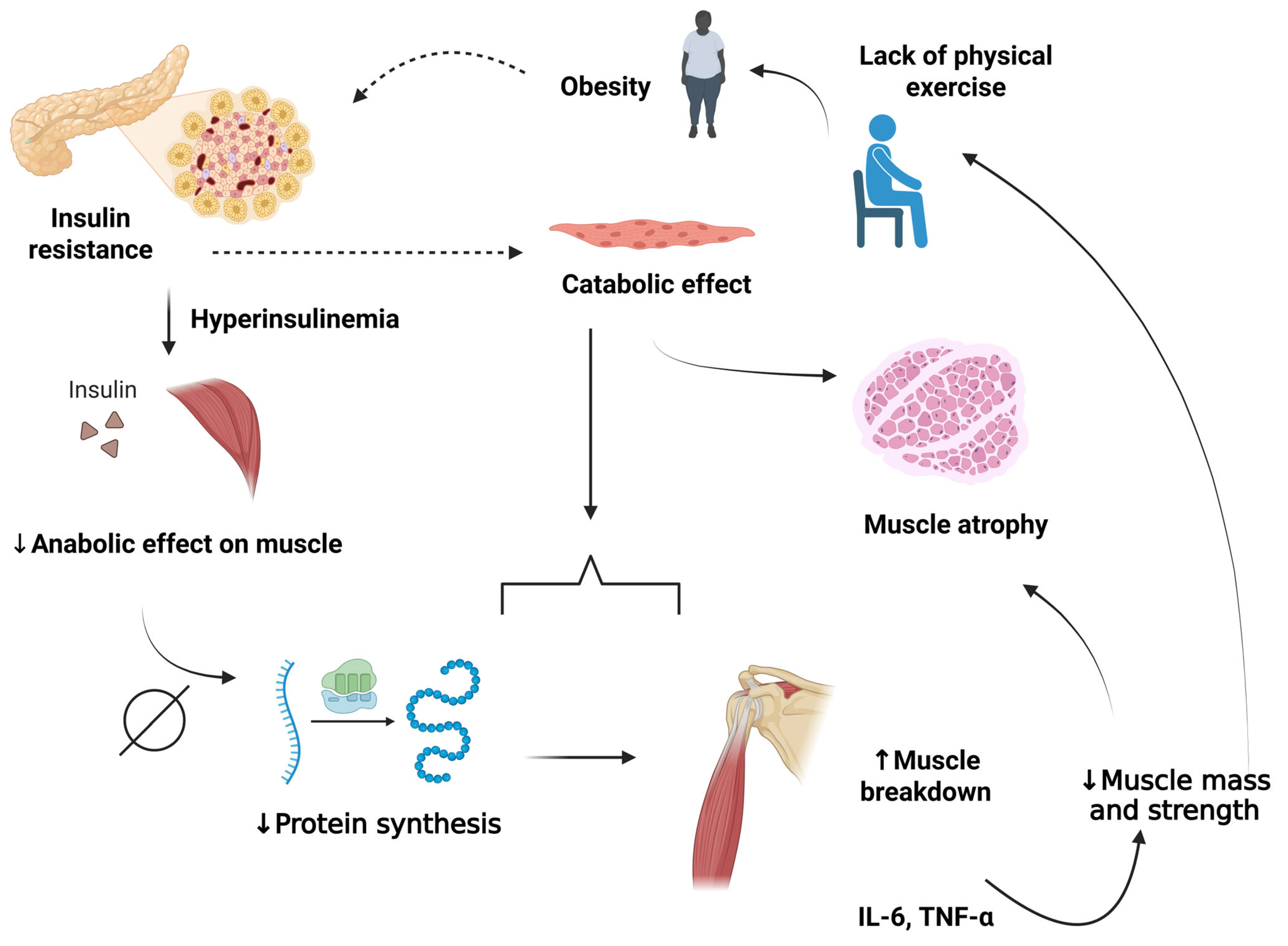 | Anabolic Resistance | - Insulin resistance; - ↓ IGF-1/GH; - Impaired amino acid response. | - ↓ Protein synthesis; - Hypercatabolism; - Lean mass loss. | [94,95,96] |