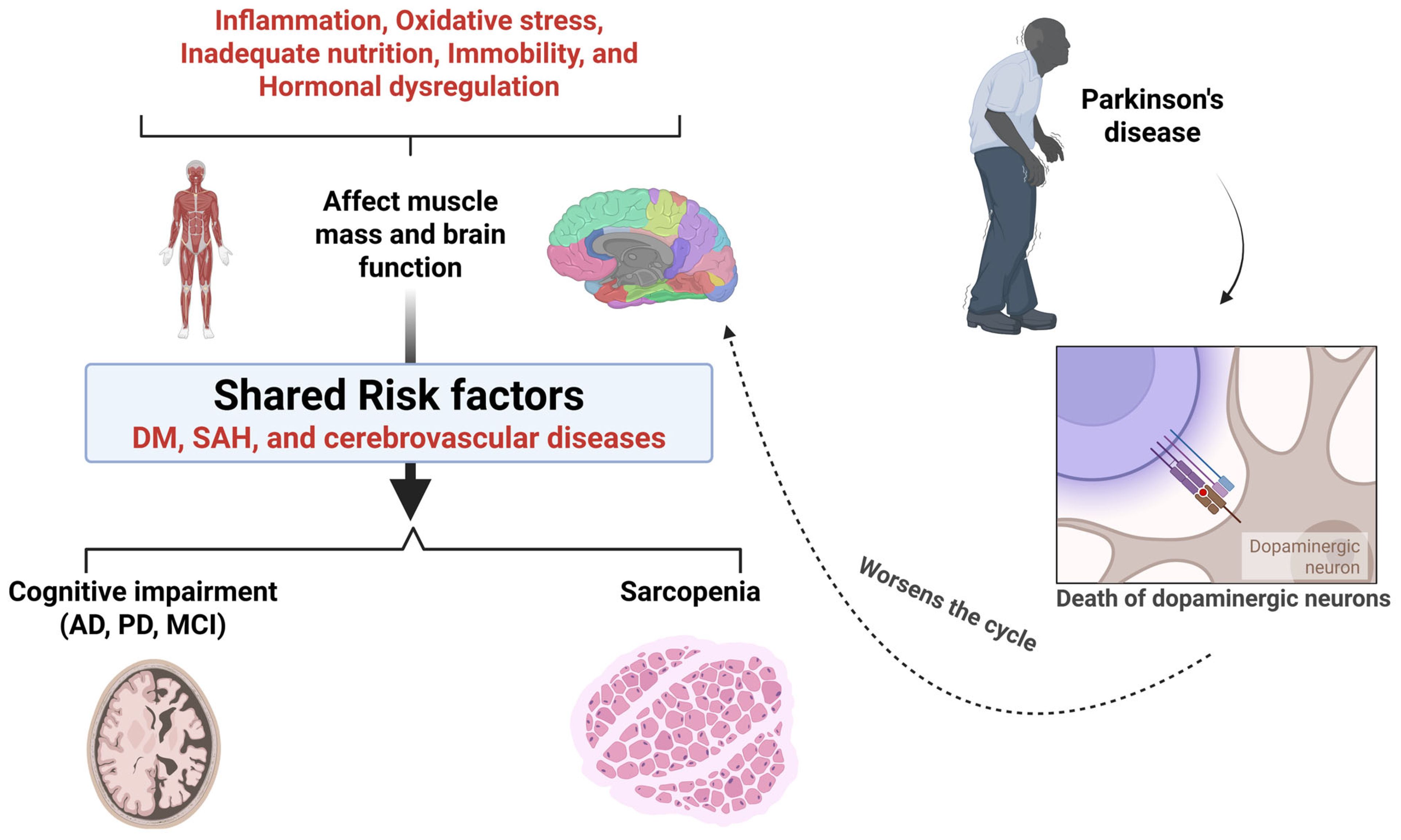 - Huang, J.; Li, M.; Luo, Q.; Li, J. The association of sarcopenia, possible sarcopenia and cognitive impairment: A systematic review and meta-analysis. PLoS ONE 2025, 20, e0324258. [Google Scholar] [CrossRef]